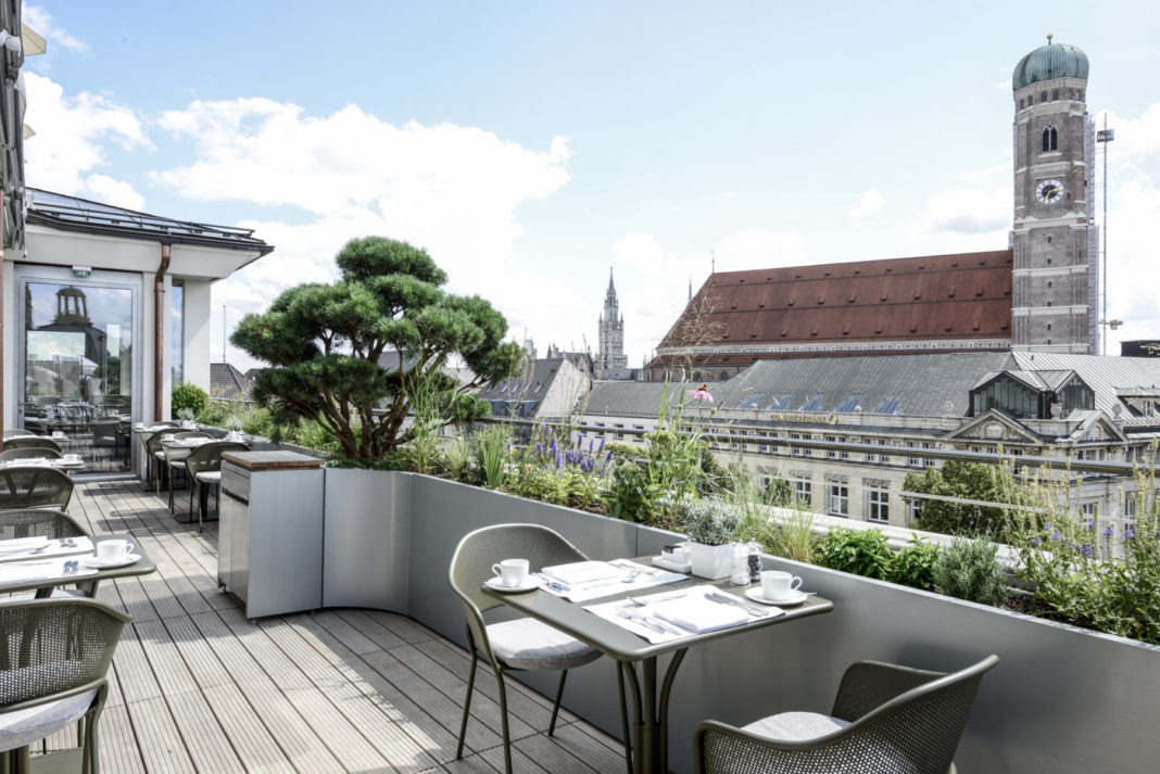 Anche il Bayerischer Hof di Monaco è un luogo storico ed elegante dove trovano perfettamente posto le ispirazioni contemporanee, come la poltrona Kate della collezione Fermob Idoles, che arreda la terrazza con una sofisticata tonalità savana, insieme al tavolo Luxembourg. Aggiungono un tocco di classe i cuscini, appositamente disegnati dalla sezione Affaires Spéciales per conferire maggiore comfort.
