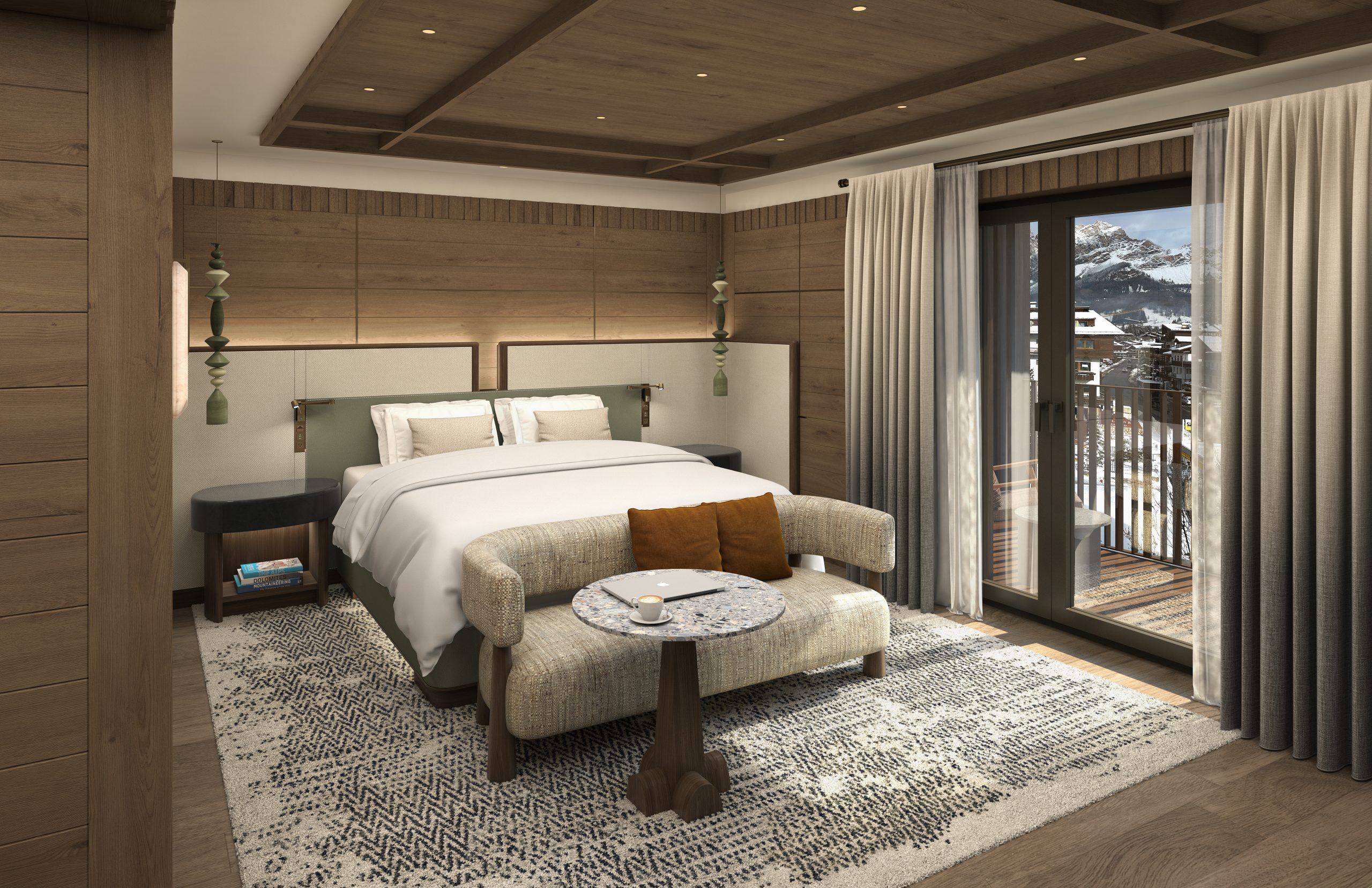 Abbiamo voluto catturare l’essenza di questo leggendario rifugio di montagna, dove il glamour di metà secolo incontra la bellezza autentica delle Dolomiti e lo spirito vivace dell’après-ski. Profondamente ispirato dal paesaggio circostante, il nostro design valorizza materiali di provenienza locale – pietra, legni caldi e tessuti artigianali – che riecheggiano le trame e i colori della montagna. L’eccellenza artigiana della regione emerge in ogni dettaglio su misura, dagli arredi ispirati alle Dolomiti alle finiture ricercate, creando un dialogo armonioso tra interni e scenario alpino“, ha fatto osservare Alessia Genova, Principal di Tihany Design.