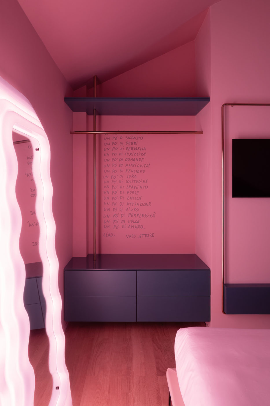 Queste ultime (25 camere e 5 suite long stay) sono tutte diverse e dedicate a progettisti – Michele De Lucchi, Marc Newson, Gae Aulenti, Vico Magistretti, Giò Ponti, Roberto Lazzeroni, Nendo – e ai movimenti stilistici che hanno attraversato l’ultimo secolo: Secessione Viennese, Arts&Crafts, Radical, Pop e Movimento Moderno.