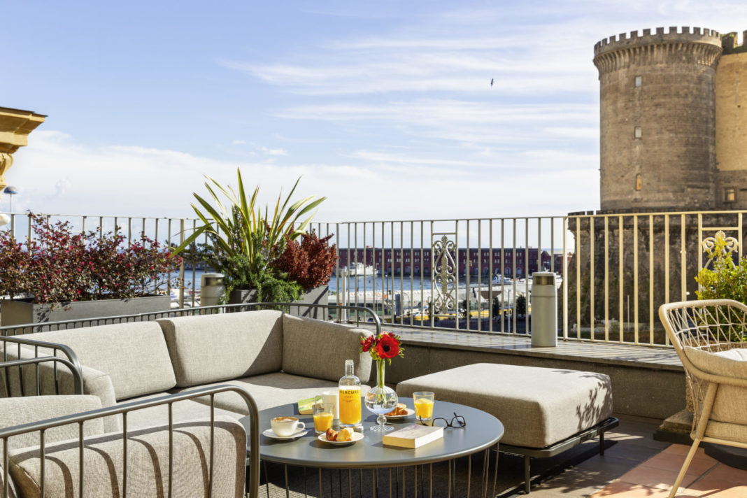 Gli ospiti potranno iniziare la giornata con una colazione ricca e invitante sulla terrazza panoramica, assaporando specialità locali come le sfogliatelle, accompagnate dal rinomato caffè italiano. Per i momenti di pausa, il bar Angioino Caffè propone una selezione di cocktail, con il celebre Limoncello Spritz in primo piano. Per chi desidera mantenersi attivo, l’hotel offre una palestra aperta 24 ore su 24 e dotata di attrezzature all’avanguardia Technogym.