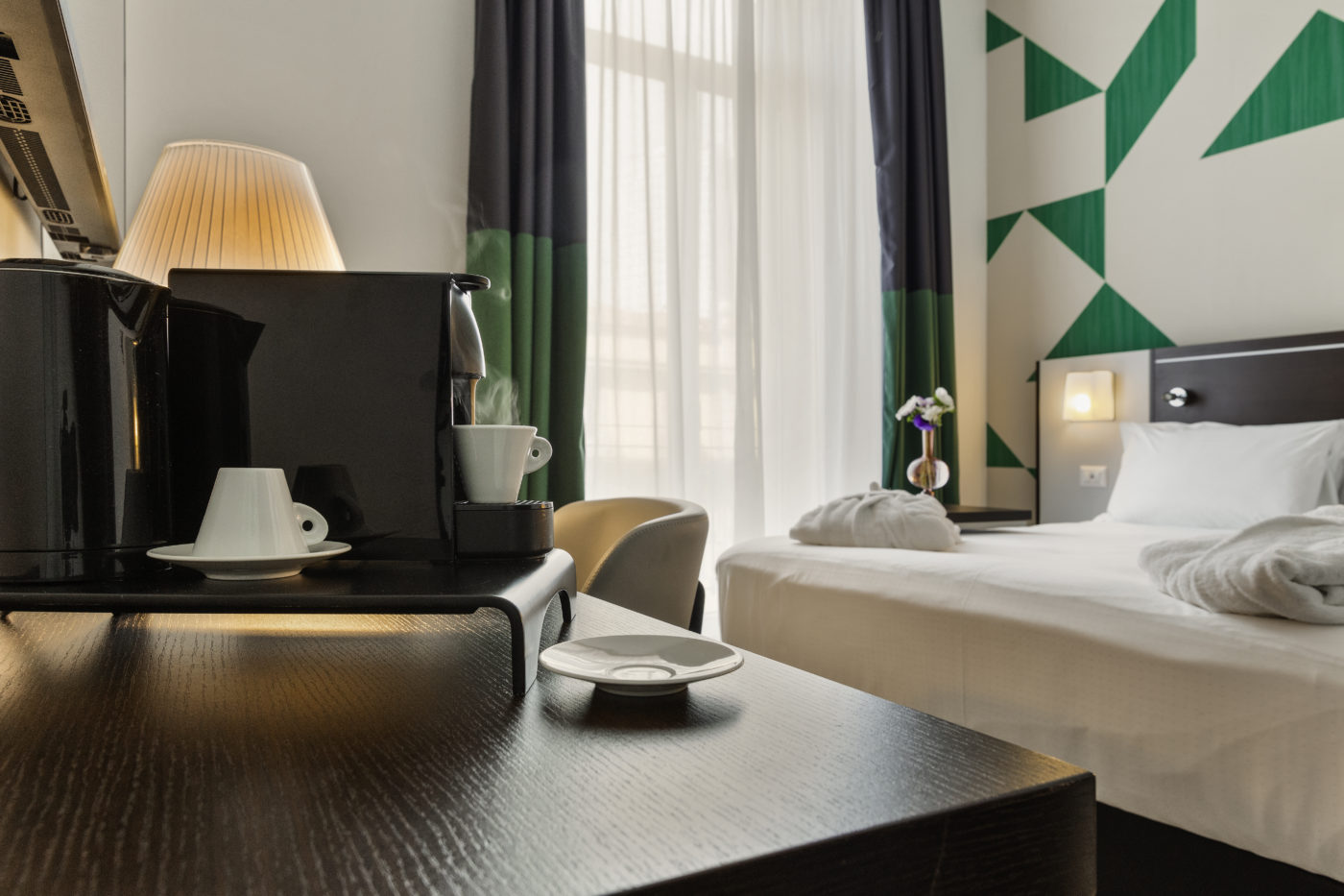 La struttura – quattro stelle – presenta 99 camere elegantemente rinnovate, tra cui 14 classic singole, 12 classic twin, 53 superior doppie e 20 privilege doppie. Le camere, insonorizzate e dotate di TV satellitare, minibar, cassaforte e prodotti da bagno Nuxe, uniscono design e funzionalità moderna per un soggiorno di puro relax.