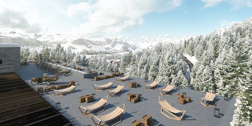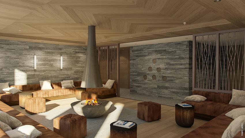Le scelte dello studio AW2 architecture & interiors, che ha seguito il restyling dell’hotel, sono partite dalla posizione dell’albergo, che si trova proprio sulle piste da sci, per costruirvi intorno un percorso che accompagna l’ospite dall’ingresso, che è situato in un punto basso della struttura, fino alla terrazza con vista sulle vette, facendogli vivere una sorta di viaggio alla ‘conquista’ del territorio.