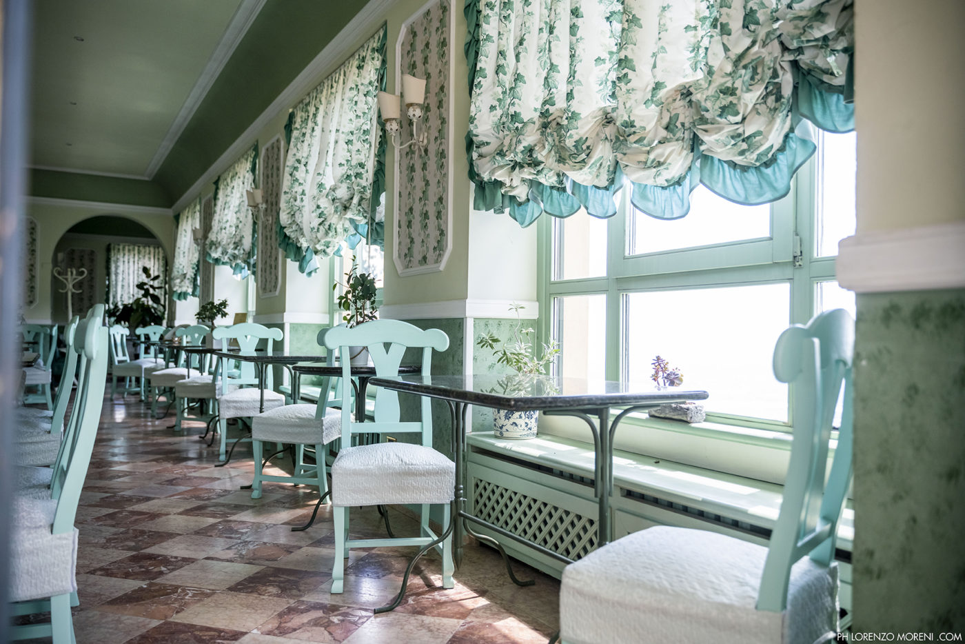 L’Albergo Colonne è un hotel storico del Sacro Monte di Varese, risale infatti alla fine dell’Ottocento. Appartenuto alla famiglia Bianchi fino al 1968, otto anni fa è stato rilevato dallo chef Silvio Battistoni insieme alla madre e al fratello, dopo aver lasciato il ristorante Schuman ad Ispra, piccolo locale con otto tavoli e una stella Michelin conquistata un anno dopo l’apertura. “Abbiamo deciso di spostarci – spiega Battistoni –, avevamo una clientela di alto livello, ma poco spazio a disposizione; e poi non c’era la possibilità di restare a dormire. Ci è stato proposto di riaprire questo hotel che pur essendo storico era chiuso da un paio di anni”.