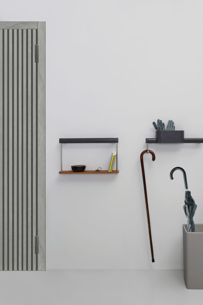 particolarmente sicura ed ergonomica. Inoltre diventa un elemento personalizzabile in grado di adattarsi a tutti i contesti, divenendo all’occasione molto più di uno strumento per la sicurezza. Con l’accessorio stampella, quello ad “L” e una mensola diventa per esempio un vero e proprio “servo muto” adatto anche ad una camera da letto in albergo. Oppure arricchita con il pianetto a sospensione si presta ad essere collocata nell’ingresso della camera d’hotel per trovare una prima presa e un appoggio come svuota tasche.