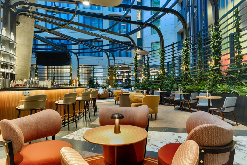 Nell’Atrium Bar – sotto l’AquaDom – è possibile incontrarsi per gustare un caffè, assaggiare la selezione di torte e una vasta gamma di liquori, birra, vino e cocktail, oltre a un’offerta di piccoli piatti serviti durante la giornata. I menu food & drink pongono una forte attenzione a ingredienti locali: birrerie e distillerie sono state selezionate da Berlino fino alla regione del Brandeburgo, mentre le materie prime sono fornite esclusivamente da produttori locali. Conto alla rovescia per l’inaugurazione del ristorante Balaustine, che avverrà nel marzo 2022, e sarà la principale sala da pranzo dell’hotel, offrendo piatti ricchi di sapori e il fascino della cucina levantina, accompagnati da cocktail di ispirazione mediorientale. Durante l’estate, la Balaustine Terrace, con vista sul fiume Sprea, diventerà il luogo ideale per gustare colazione, pranzo e cena o semplicemente un drink serale all’aperto.