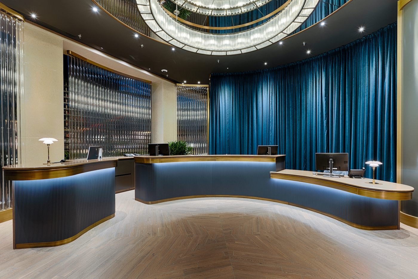 La ristrutturazione ha riguardato la riprogettazione di tutte le camere – 427 camere e suite disposte su sei piani -, di un nuovo spazio di reception, della hall, del bar e dei ristoranti. Fulcro dell’hotel è l’AquaDom, il più grande acquario del mondo dalla forma cilindrica, che con i suoi 1.600 pesci tropicali rappresenta una grandissima soluzione scenografica ed è stato anch’esso oggetto di una importante opera di modernizzazione.
