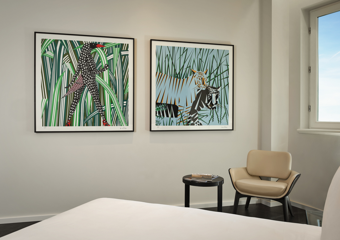Nel caso del nuovo art’otel Zagreb l’artista scelto è Boris Bućan: la sua arte, sviluppata tra Zagabria e Lubiana negli anni ‘70, è un esempio importante di contaminazione fra pittura e tecnologie come la fotografia, la fotocopia, film, video e graphic design. L’hotel ha assorbito le ispirazioni del lavoro di Bućan e le ha trasferite nelle sue atmosfere estetiche, trasformando gli spazi dell’hotel in una galleria d’arte.