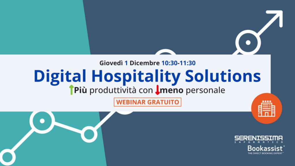 Per questi motivi Serenissima Informatica e Bookassist hanno organizzato il webinar gratuito “Digital Hospitality Solutions: più produttività con meno personale”.