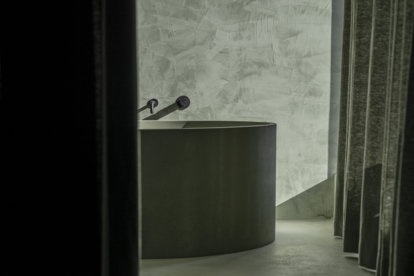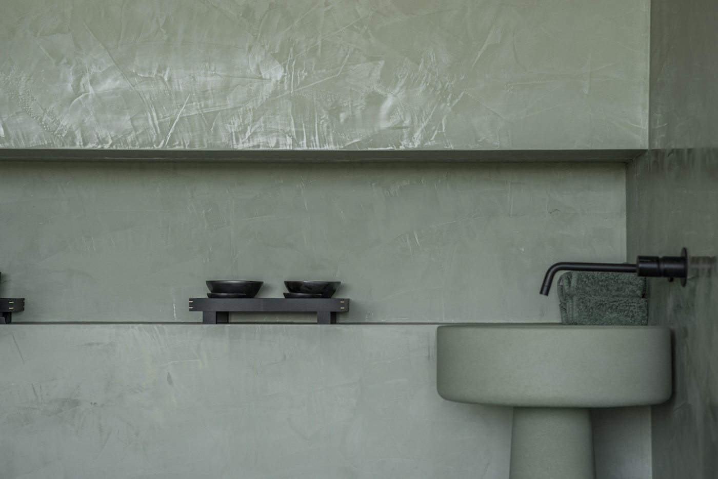 Per questo spazio minimalista e immersivo, dall’ampia proposta del brand è stata selezionata Aura perché ritenuta la finitura che garantisse un continuum esterno-interno per creare un ambiente in totale armonia con il paesaggio circostante e che al tempo stesso ne diventasse elemento caratterizzante. Con Aura, infatti, le pareti acquistano un originale effetto con cui, sia la luce naturale, sia quella artificiale, possono giocare. Una proposta nella quale la tradizione del grassello di calce incontra la contemporaneità: morbida al tatto, fresca e lucida riesce ad impreziosisce gli ambienti creando un dinamismo raffinato e discreto.