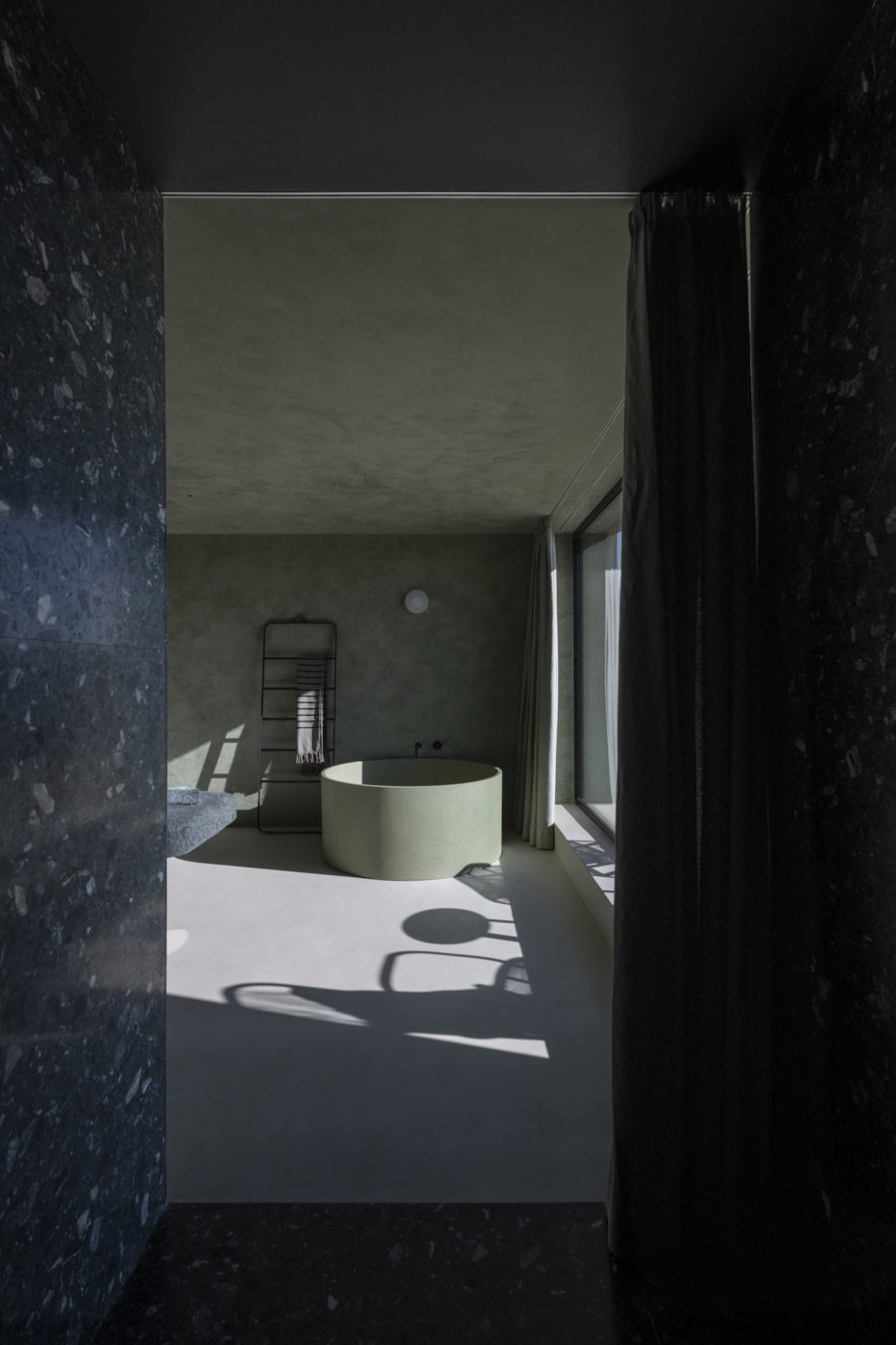 A rafforzare i rimandi indoor-outdoor è il colore verde che trae ispirazione dalla flora naturale della tenuta: le pareti e i soffitti vengono rivestiti nei colori Eucalipto 5264 e Abete 7156. In questo processo di selezione, significativo è il ruolo di Massimo Simonetta Decorazioni Lda (basato a Lisbona in Portogallo) che ne ha curato anche la posa. La Calce del Brenta riveste le stanze connotate da varie atmosfere delle tre sale per i trattamenti e del corridoio per offrire il meglio della proposta benessere. Tanti i trattamenti: esperienze uniche con i prodotti viso di Ignae e per il corpo con i trattamenti a base di vino, miele e rosmarino di Herdade da Malhadinha Nova.