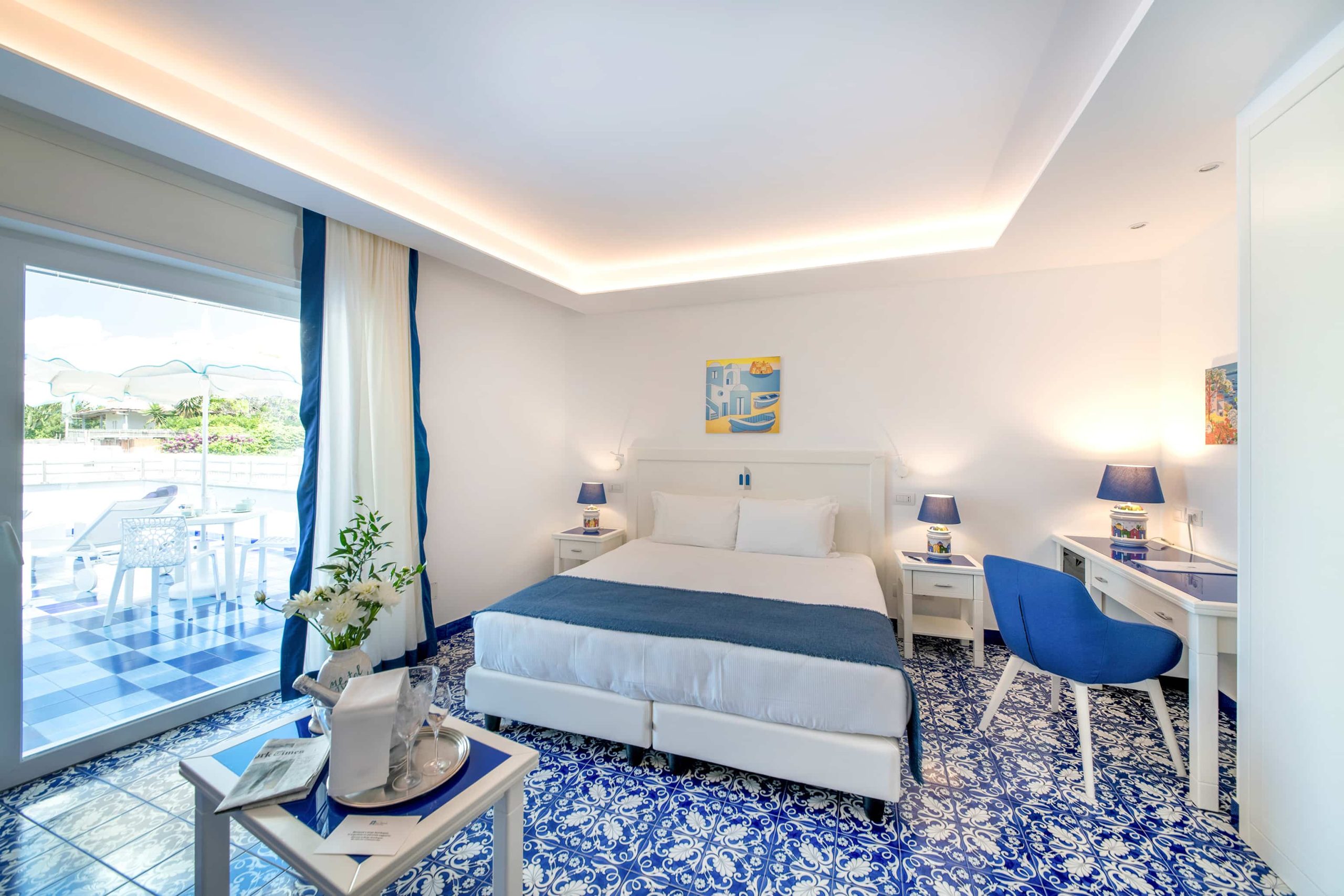 Situato nel cuore di Sant’Angelo, borgo esclusivo di Ischia caratterizzato da casette colorate, vicoli pittoreschi e l’iconico isolotto vulcanico collegato alla terraferma, l’hotel quattro stelle adults only si sviluppa all’interno di un parco di circa 2.000 mq. Le 42 camere e suite riflettono i colori del mare mediterraneo e sono impreziosite da maioliche artigianali realizzate da ceramisti locali.