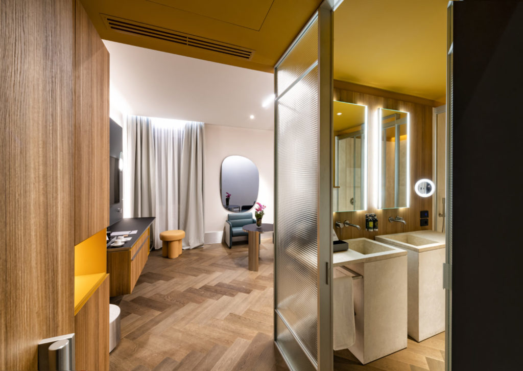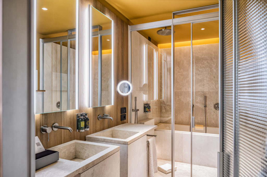 Gli architetti Armando Bruno, CEO dello Studio Marco Piva, e Ferdinando Tedesco, Chief Decorator, hanno sviluppato un progetto che rispetta il patrimonio storico dell’edificio e soddisfa le esigenze di oggi. Per l’hotel sono stati progettati arredi su misura e la disposizione degli spazi è stata accuratamente studiata per creare un’atmosfera sofisticata.