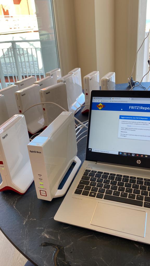 Per estendere la portata del segnale Wi-Fi e creare diverse reti Mesh con i rispettivi FRITZ!Box 4040 master delle sottoreti, sono stati installati 14 FRITZ!Repeater 3000, 5 FRITZ!Repeater 2400 e 7 FRITZ!Box 4040, per un totale di 27 dispositivi FRITZ! impiegati per la realizzazione di questo progetto.