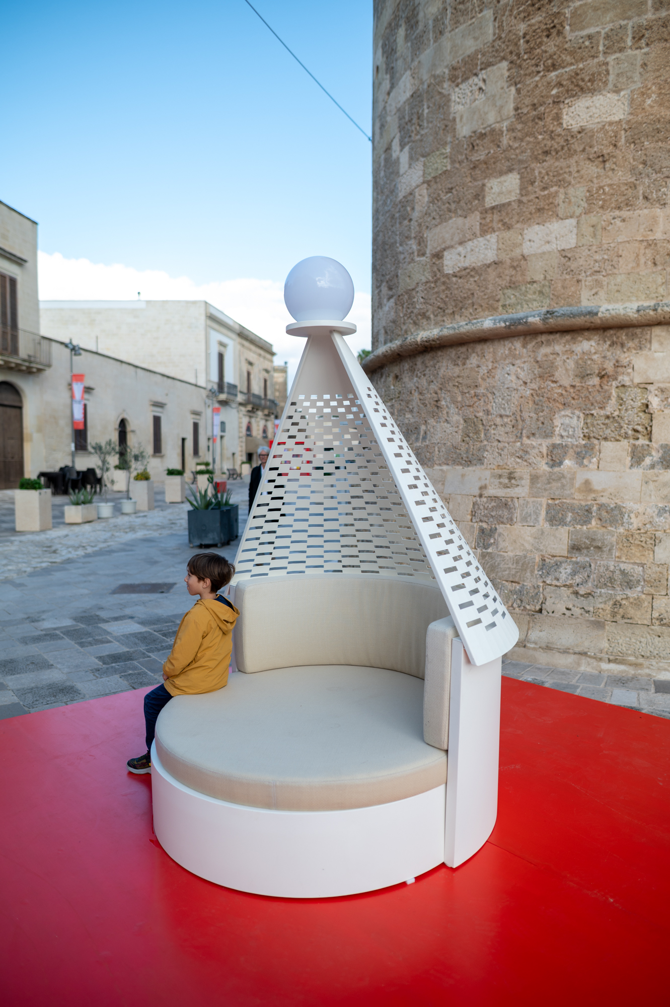 L’edizione 2025 del festival ha scelto come tema “Il progetto necessario”, innescando un dibattito a diversi livelli sulla definizione del concetto di bisogno nel mondo contemporaneo e sulla capacità del design di porsi come strumento potente (e politico) in grado di dare a queste necessità delle risposte concrete. Le voci dei relatori presenti – tra cui quelle dei designer Giulio Iacchetti e Francesco Faccin, del fondatore di Poli.Design Francesco Zurlo, dei grafici Mauro Bubbico e Stefano Cipolla, dell’architetto Alessio Battistella – si sono intrecciate alle mostre nel Palazzo Baronale e nel Palazzo Ducale di Martano e all’esposizione nelle piazze di quattro prototipi di proposte per il mondo outdoor realizzati da Sprech.