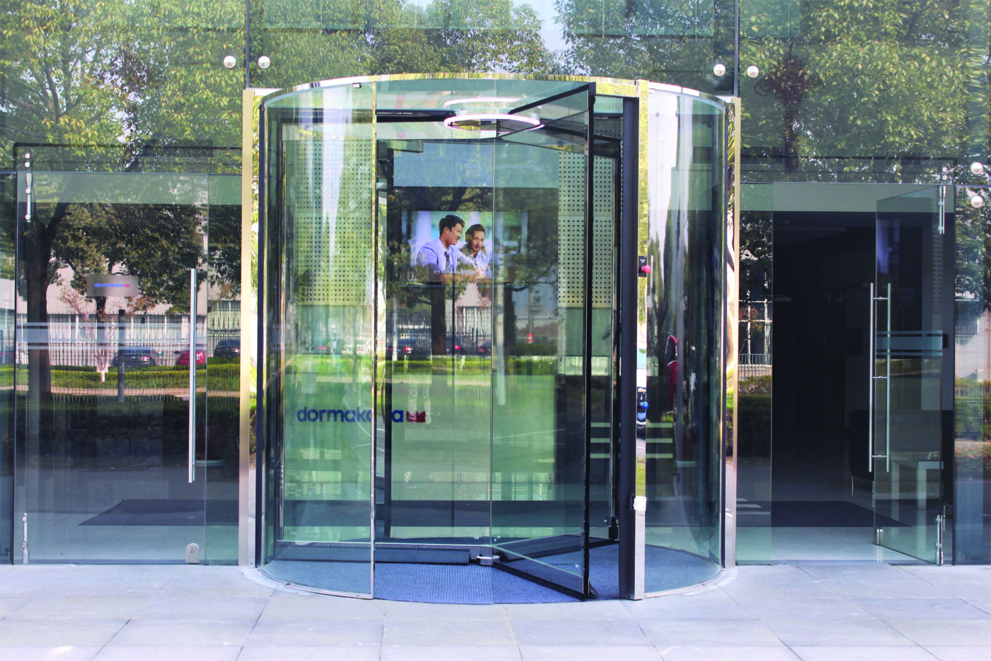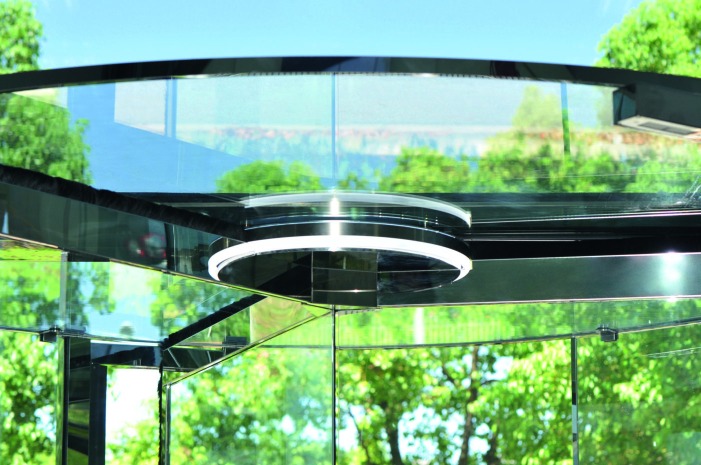 La nuova porta girevole tutto vetro KTV Atrium Flex di dormakaba incontra le esigenze progettuali di qualsiasi tipo di edificio, sia moderno che storico, infondendo alla struttura leggerezza e trasparenza.