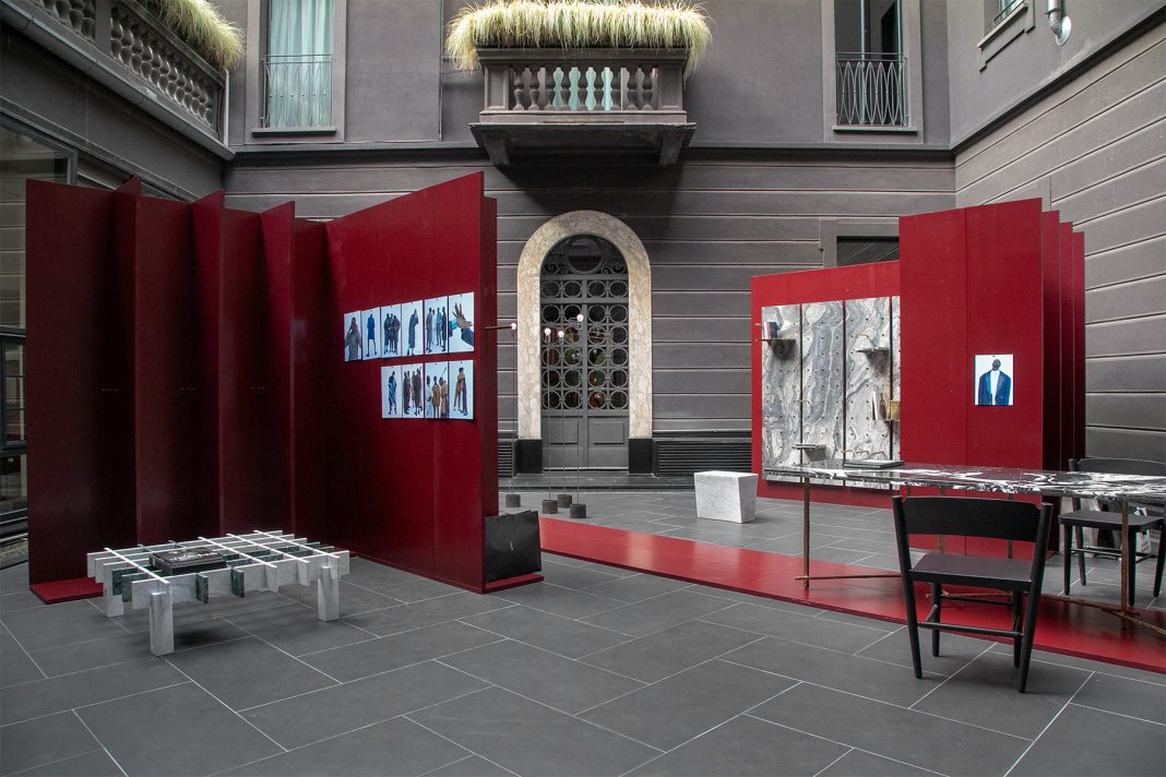 Il percorso espositivo si ispira alla figura carismatica e visionaria di André Leon Talley, storico fashion editor di Vogue, e si sviluppa attorno a un impianto architettonico essenziale, intimo e permeabile in cui quinte in legno, tinte di un rosso profondo, disegnano pareti destrutturate che lasciano filtrare la luce e lo sguardo.