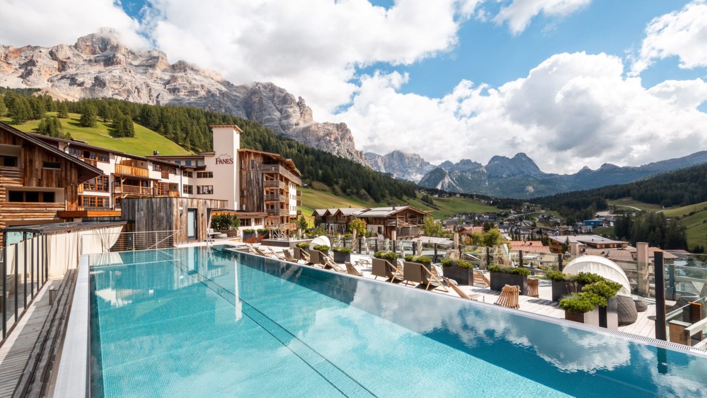 Fra i primi hotel costruiti in Alta Badia, il Dolomiti Wellness Hotel Fanes è stato realizzato nel 1957, quando la famiglia Crazzolara decise di ristrutturare un antico maso risalente al 1560. Oggi il complesso 5 stelle è tra i più rinomati di tutto l’Alto Adige e vanta 70 camere e suite più otto chalet, uno spazio wellness di 3.000 metri quadri con saune, sale fitness, piscina coperta ed esterna, e una infinity pool sopraelevata di 25 metri, con vista sulle cime delle Dolomiti.