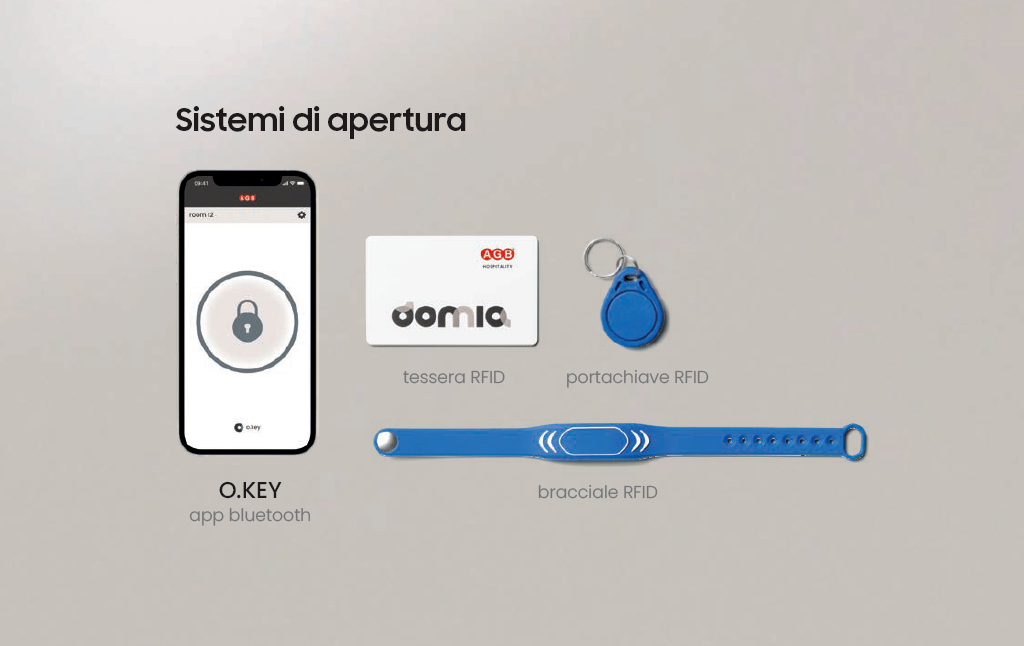 Il sistema Domia rappresenta una soluzione completa ed integrata per la gestione degli accessi in ambito alberghiero, con funzionalità specifiche che assicurano agli ospiti un’eccellente esperienza d’uso e la migliore sicurezza, e all’ albergatore il massimo controllo degli spostamenti all’interno della struttura.