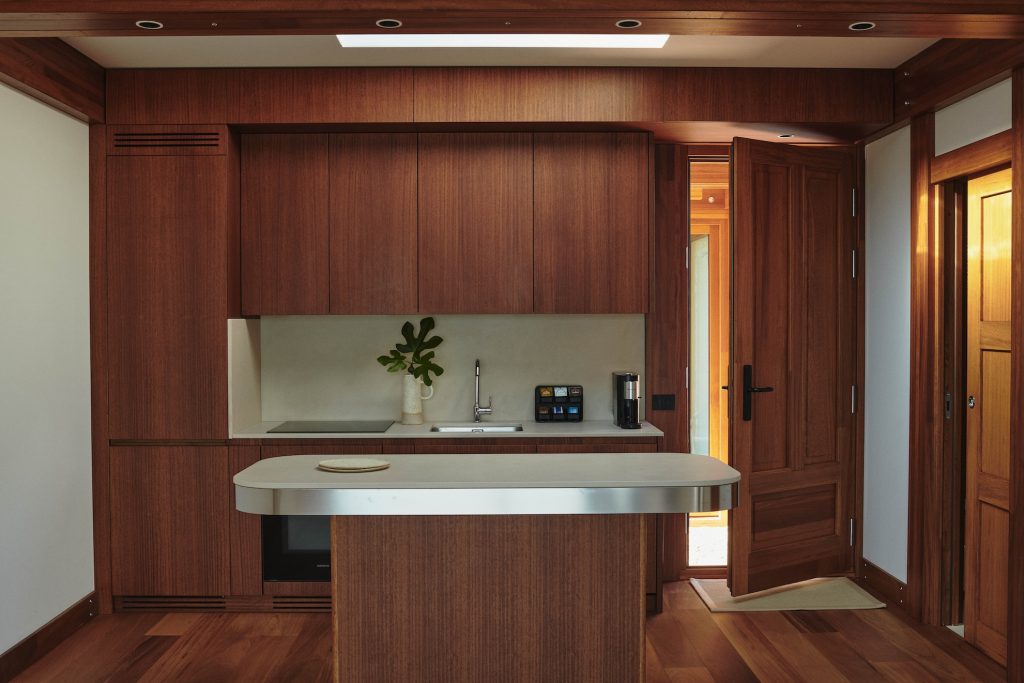 Il rispetto per la natura e la sensibilità nel coglierne le indicazioni hanno guidato il progetto del complesso. “Volevamo costruire poco” spiega Christian Rivola, l’architetto che con il suo studio ribo+, attivo da 25 anni, ha seguito il lavoro sin dall’inizio, quando l’area, che ha una vista spettacolare sul lago, era completamente vuota a eccezione di una vecchia stalla. Una costruzione semplice ed essenziale che ancora oggi è la memoria del sito, perché è stata usata come base per il sesto modulo, più grande degli altri (69 mq) e flessibile nell’utilizzo: può diventare uno spazio da utilizzare come zona comune, un’area per lo yoga o la meditazione o altre attività, o essere adibita a abitazione anch’essa. Gli altri moduli, che misurano 33 mq, si inseriscono in maniera discreta e armoniosa nel territorio. “Sono architetture senza tempo, adagiate nel bosco come se fossero sempre state lì” sintetizza Rivola. Ogni modulo è un’abitazione, completa di ogni comfort e organizzata per ospitare da 2 a 4 prsone.