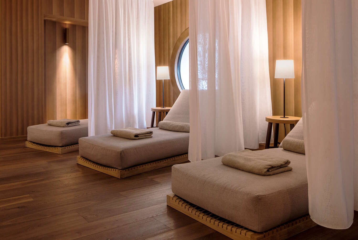 Uno dei dettagli che aggiunge esclusività alla struttura è il risultato della ricerca svolta sul tema botanico alpino. Capriotti ha selezionato dall’atlante Florae Austriacae del botanico settecentesco Nikolaus Von Jacquin, 10 fiori tipici delle Dolomiti che sono stati riprodotti sulle testate imbottite dei letti e in altri elementi dell’albergo. Il tema botanico diventa quindi una sorta di filo conduttore che tocca tutti gli ambienti comuni, tra cui il ristorante e la spa. Quest’ultima è uno spazio spettacolare e funzionale di 1000 metri quadrati che ospita una piscina semi-olimpionica di 25 metri, unica nel suo genere, un Calidarium, la Vitality pool interna ed esterna, un’area relax e il Faloria Fitness Center, con il nuovo restyling per accogliere tutte le attrezzature di ultima generazione firmate Technogym, mentre la cura del corpo segue una filosofia olistica. L’ampia gamma di proposte, i nuovi trattamenti e i programmi personalizzati garantiscono l’esperienza ideale per ogni esigenza e permettono a tutti gli ospiti di rigenerare corpo e mente in questa “grotta” contemporanea, in perfetta connessione con gli elementi naturali e illuminata dalla luce naturale.