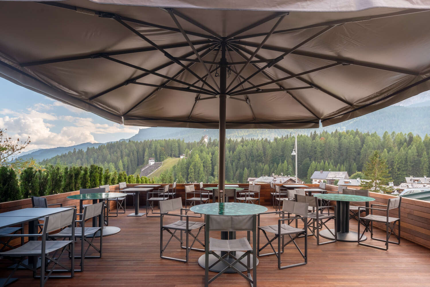 La silhouette inconfondibile del trampolino del 1956 si scorge dalla terrazza, una presenza che testimonia un passato glorioso ma anche un ponte ideale verso un futuro imminente tutto da scrivere. All’interno il design contemporaneo incontra e si confronta con gli elementi della tradizione montana per dar vita ad ambienti caldi, accoglienti e raffinati, nei quali ritemprare corpo e mente che qui ricevono un booster di benessere speciale, regalato da un contesto naturale straordinario. Il Faloria Mountain Spa Resort di Cortina d’Ampezzo è stato interessato in questi ultimi anni da numerosi interventi di riqualificazione che oggi consolidano la sua posizione di punto di riferimento di un turismo internazionale di alto livello. Comfort e natura si integrano simbioticamente, esaltandosi a vicenda, grazie alla totale immersione della struttura nel paesaggio circostante. Dai balconi delle camere e delle suite si aprono viste mozzafiato sulle montagne circostanti, un’atmosfera magica, ricca di fascino e tradizione, che unita al servizio esclusivo e a uno staff competente soddisfa pienamente le esigenze di turisti leisure provenienti da tutto il mondo.