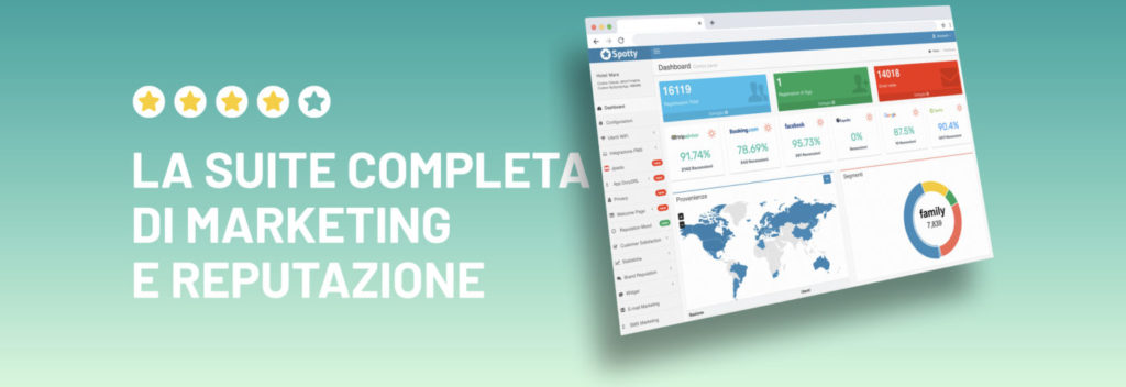 Oltre a raccogliere dati e profilare i clienti, inoltre, Spotty si prende cura della web reputation della struttura inviando agli ospiti – sempre in maniera automatica – dei questionari di soddisfazione. Il primo questionario viene inviato entro 24 ore dal check-in per valutare la prima impressione e risolvere in tempo reale eventuali criticità, mentre il secondo viene inviato nelle ore successive al termine del soggiorno, per indagare la customer satisfaction e guadagnare una recensione positiva.
