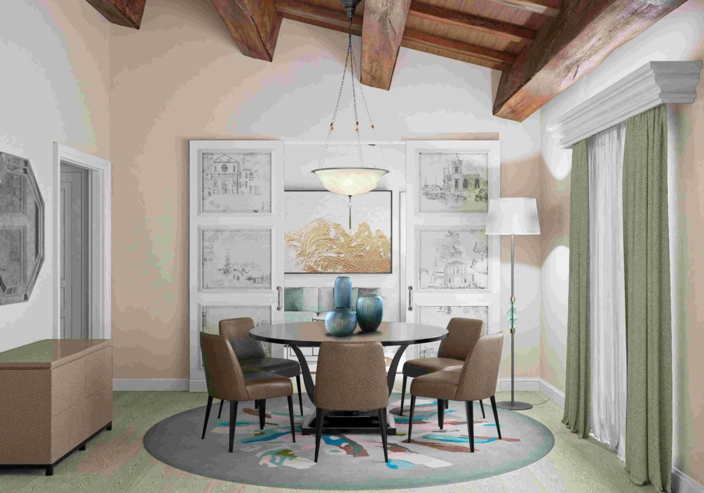 Ad ispirare il progetto non poteva che essere il genius loci. “Per il primo lotto di suite – spiega Fiorino –, avevo scelto un colore grigio cameo con dei tocchi di rosso. Per quest’ultimo intervento invece mi sono ispirato all’acqua del mare. Che nella laguna di Venezia è di un verde unico”. Una nuance che ricorre nelle tappezzerie Rubelli dei divani e delle poltrone, nel tessuto dei paraventi “Toile de Venise”, nelle testate dei letti e nelle tende.