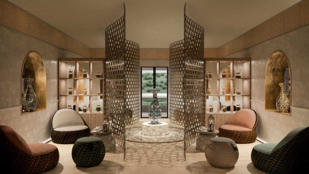 Anche la piscina interna, collegata a questa parte della Spa, ricorda un tipico bagno termale dell’antica Roma con le sue imponenti colonne di marmo. Dalle vetrate la vista si apre sull’anfiteatro contornato da 400 rose bianche. Entrando nel patio arabo, l’ospite viene avvolto dall’atmosfera arabeggiante del bagno turco salino, che utilizza il famoso e tipico sale dell’antica salina Culcasi di Nubia, presidio Slow Food e unica salina della Sicilia occidentale dove, da oltre 100 anni, il sale viene raccolto manualmente una volta all’anno: uno scrub completo con questo sale aumenterà i benefici del bagno di vapore. L’area arabo-romana comprende anche un’elegante Tea Room, la conclusione perfetta di questa prima parte del viaggio.