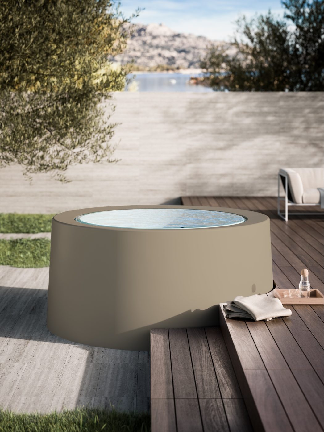 Glass 1989/Ronal Bathrooms presenta Infinity, un’innovativa collezione di minipiscine a sfioro che rivoluziona il concetto di spa all’aperto. Disponibile in versione circolare (Ø222,5 cm) o rettangolare (260×240 cm), si distingue per la facilità di installazione: non richiede vani tecnici dedicati poiché l’impianto è integrato sotto il perimetro della vasca. La canalina di sfioro, nascosta dalla pannellatura one piece, garantisce un effetto estetico pulito fungendo anche da punto d’appoggio. I serbatoi di compenso sotto il guscio mantengono costante il livello dell’acqua. Personalizzabile nella finitura, dal bianco mat a colori opachi, può essere installata ad incasso, semi-incasso o in appoggio, ed è dotata di sedute massaggianti, cromoterapia e optional come kit audio bluetooth e ozonizzatore.