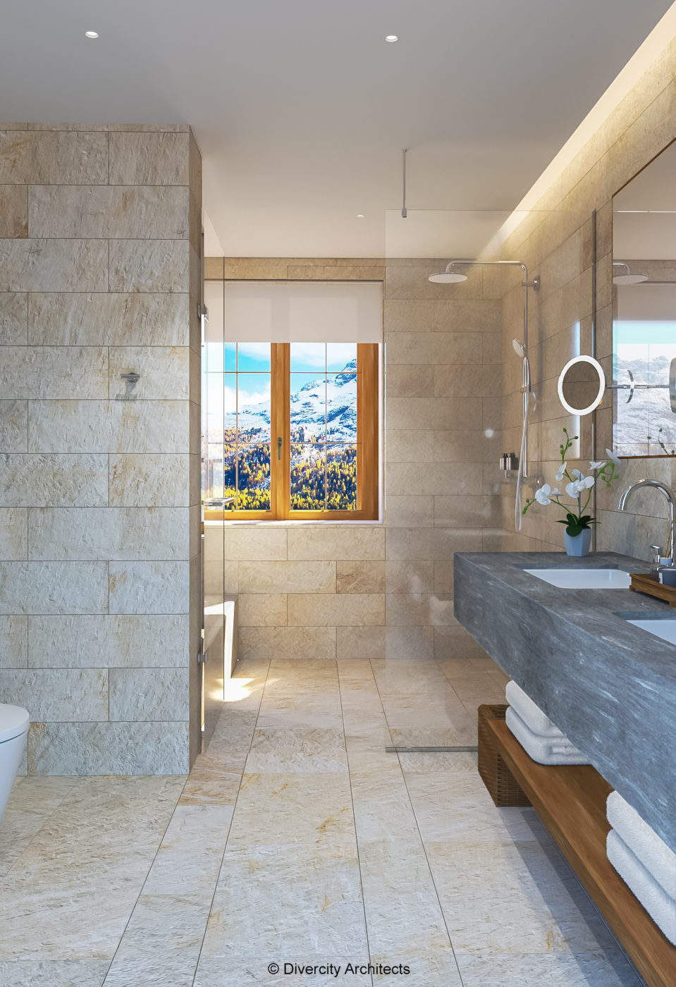 L’ampliamento dell’hotel è stato curato dalla collaborazione tra la londinese Divercity Architects – con Nikolas Travasaros e Carole Topin – e gli architetti Blarer & Reber di Samedan, in Svizzera. Un mix tra due stili ed esperienze diverse che porta a coniugare la tradizione con la contemporaneità. I tratti distintivi dell’edificio originale con incisioni e giochi di colore sono stati volutamente preservati nella La Margna Wing, che presenta elementi decorativi originali dell’Art Nouveau, mentre il progetto contemporaneo del Grace Wing si adatta meravigliosamente al paesaggio circostante.