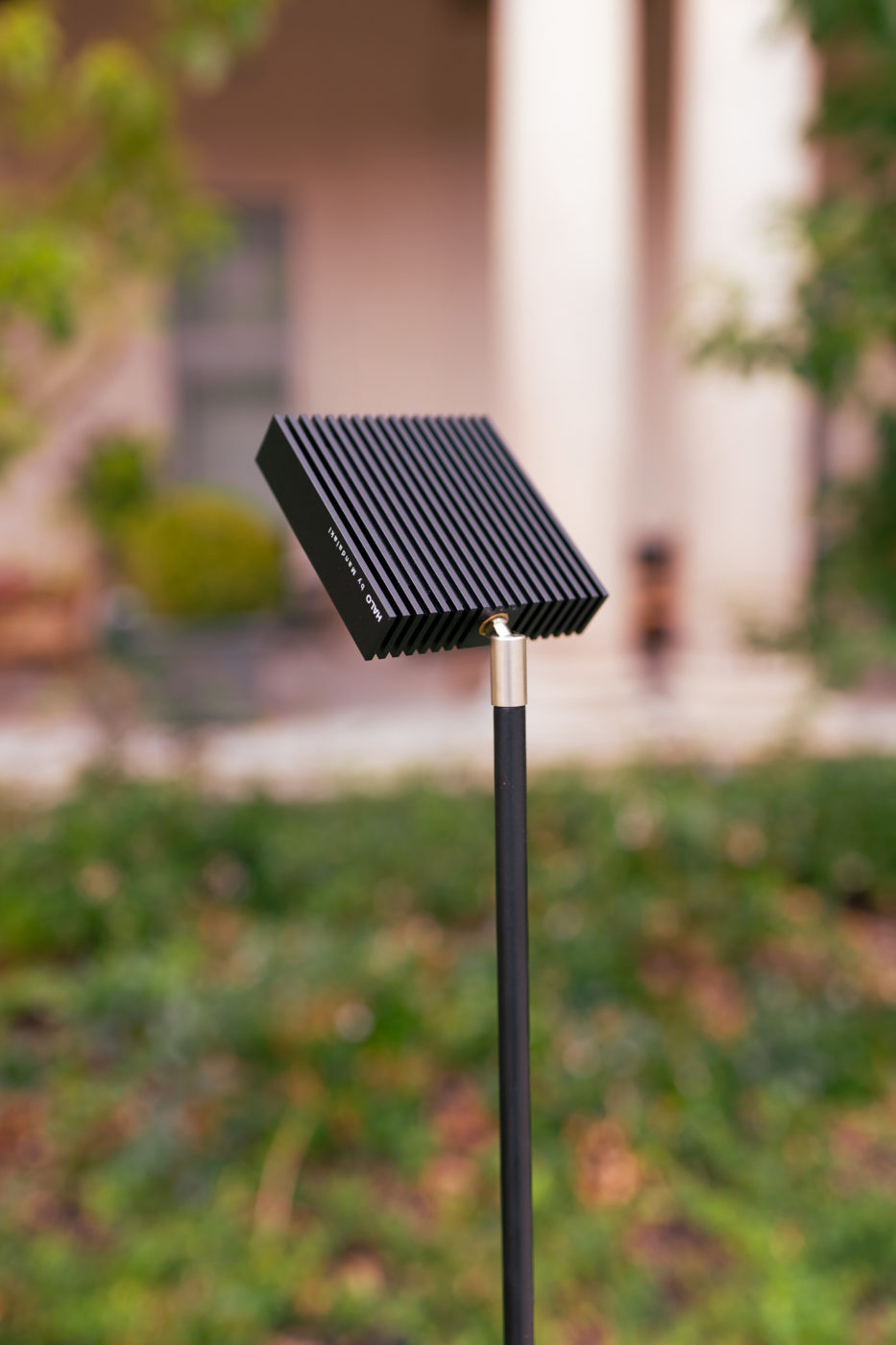 È possibile ancorare Halo Giga Outdoor al terreno attraverso un picchetto a terra, consentendo una facile installazione in giardini e vialetti, oppure utilizzare una base sovradimensionata per superfici piane come terrazze, bordi piscina e giardini pensili.