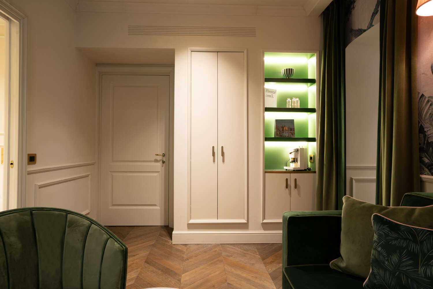 E se gli ospiti, dopo il relax in albergo, vogliono scoprire la città e il territorio, possono rivolgersi alla reception, dove un articolato programma di proposte è a loro disposizione: “abbiamo stabilito rapporti privilegiati con differenti realtà e proprio per questo possiamo organizzare esperienze esclusive di degustazioni, shopping, laboratori come quello dell’arte della profumeria, laboratori orafi, laboratori dedicati alla creazione dei cappelli, guanti, etc (per alcuni di questi ospiteremo anche delle mostre “permanenti”). I nostri ospiti chiedono e noi abbiamo la possibilità di esaudire i loro desideri, proprio come se fossimo dei padroni di casa perfettamente in sintonia con il nostro territorio. Proponiamo tutto quello che, con ragionevolezza, ci possono chiedere: trasferimenti, noleggio di mezzi diversi, fine dining in camera, acquisto biglietti per attrazioni e musei, session privata con parrucchiere in camera, trattamenti e massaggi, degustazioni private nelle migliori cantine toscane, caccia al tartufo, trasferimenti e viaggi in elicottero, noleggio macchine d’epoca o particolari, esperienze in mongolfiera, raffinati pic-nic, ecc.”.
