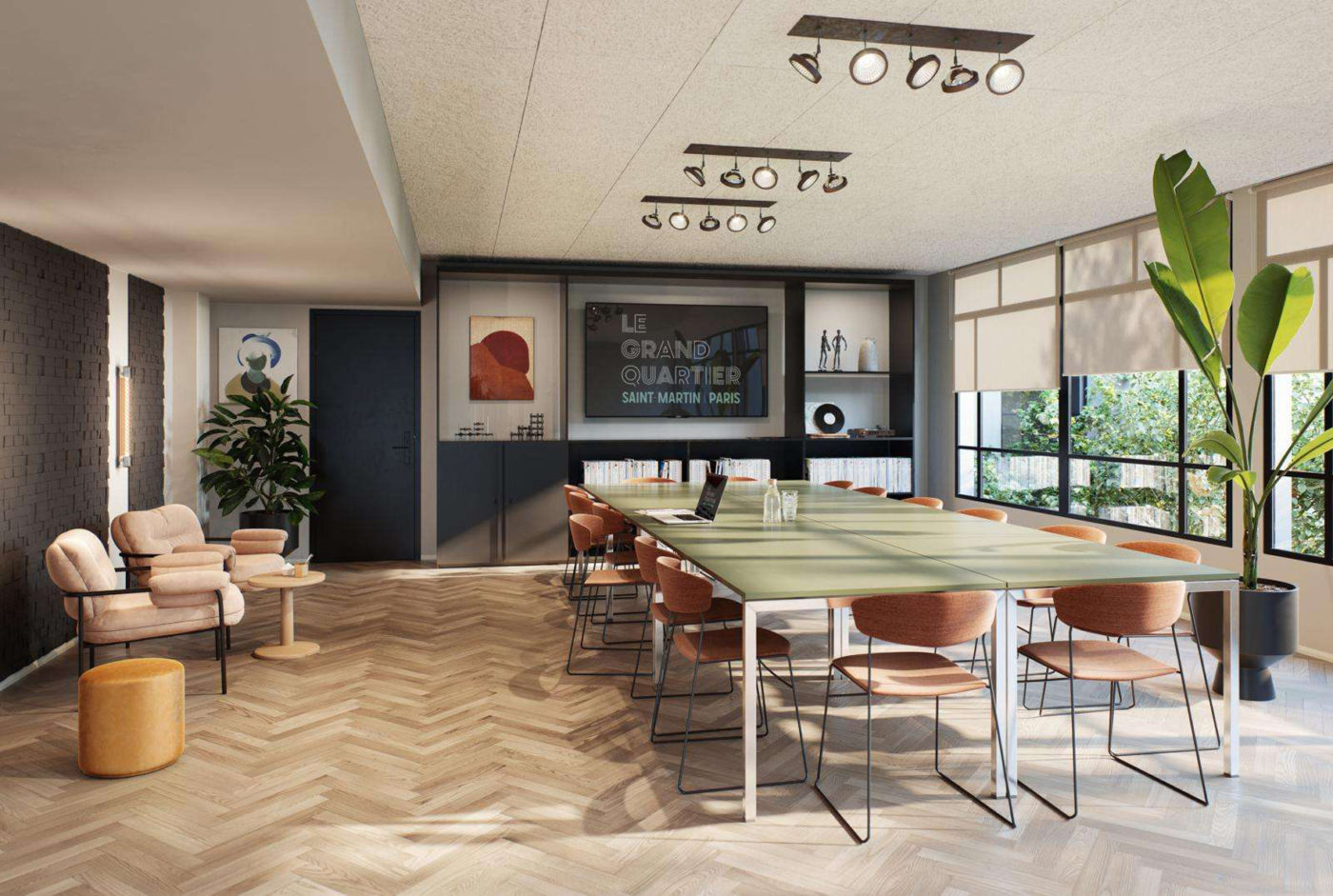 Le Grand Quartier offre una nuova visione di “benessere urbano”, concentrando in un incredibile e sorprendente edificio, con bellissime vetrate, una vista unica sui tetti di Parigi e un magnifico giardino: un hotel, un caffè, un negozio e spazi per incontri di lavoro.
