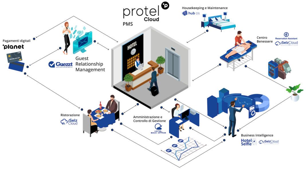 Serenissima Informatica presenta una piattaforma integrata in cloud che unisce la solidità di protel Cloud PMS e la potenza di Guezzt, Guest Relationship Management Platform, per gestire ogni fase del guest journey: dall’ispirazione alla prenotazione, dal soggiorno fino alla fidelizzazione. Tutti i dati sono centralizzati e facilmente accessibili, connessi anche ai processi amministrativi grazie a Hotel Back Office per la fatturazione e il controllo di gestione. Una soluzione unica per semplificare l’operatività, potenziare l’engagement e trasformare ogni ospite in un repeater, grazie alll’esperienza di oltre 40 anni a fianco delle strutture Upscale, Upper Upscale e Luxury nella loro trasformazione digitale.