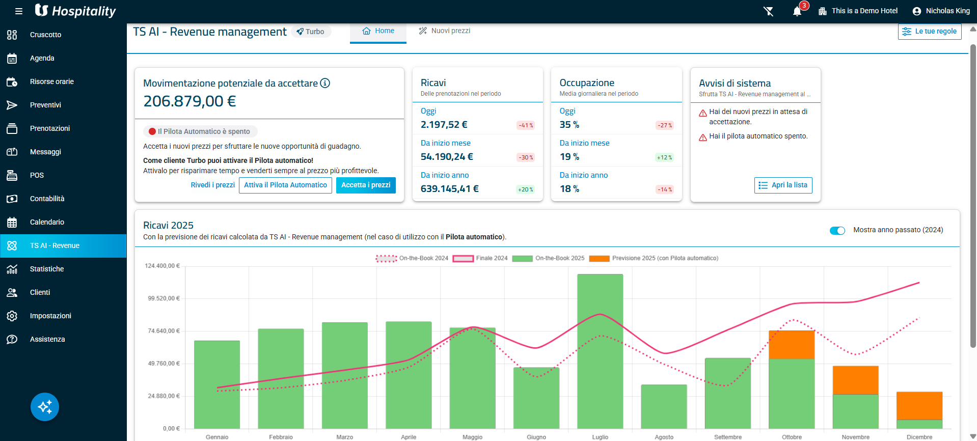 TeamSystem Hospitality è la soluzione cloud all-in-one pensata per le strutture ricettive che vogliono gestire in modo semplice ed efficiente ogni aspetto del proprio business. Unica nel suo genere, integra gratuitamente un sistema di revenue management basato sull’AI per massimizzare redditività e occupazione senza bisogno di reparti dedicati. Consente self check-in e self check-out, velocizza gli adempimenti normativi e fiscali, e si integra con la ristorazione e i punti vendita interni, offrendo esperienze fluide e pagamenti digitali e cashless che riducono tempi, errori e attività manuali.