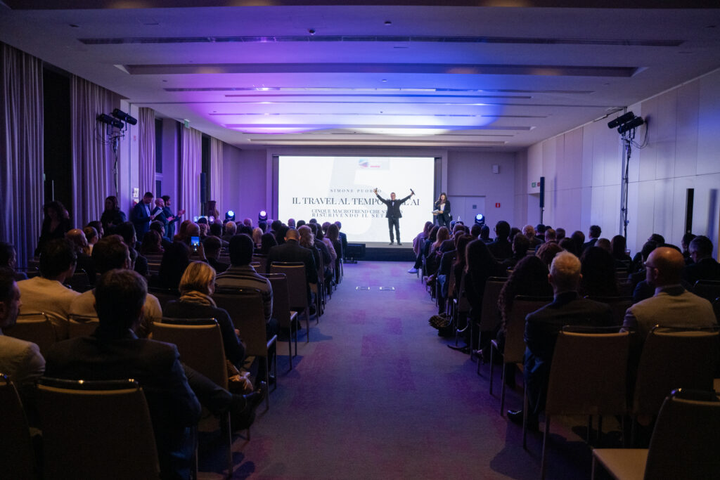 Durante la serata Simone Puorto, “tecnofilosofo” ed esperto di Intelligenza Artificiale, ha illustrato i macrotrend che stanno riscrivendo il settore del travel. Un intervento veloce ma ricco di spunti, dall’ambiguità della definizione stessa dell’AI (si tratta davvero di intelligenza? è corretto usare la parola artificiale, a cui si attribuisce un’accezione negativa?) alle evoluzioni tecnologiche che diventano opportunità da imparare a destreggiare e cogliere, come la reportistica predittiva e l’AI commerce. Uno spaccato rapido e affascinante sul prossimo futuro del viaggiare.