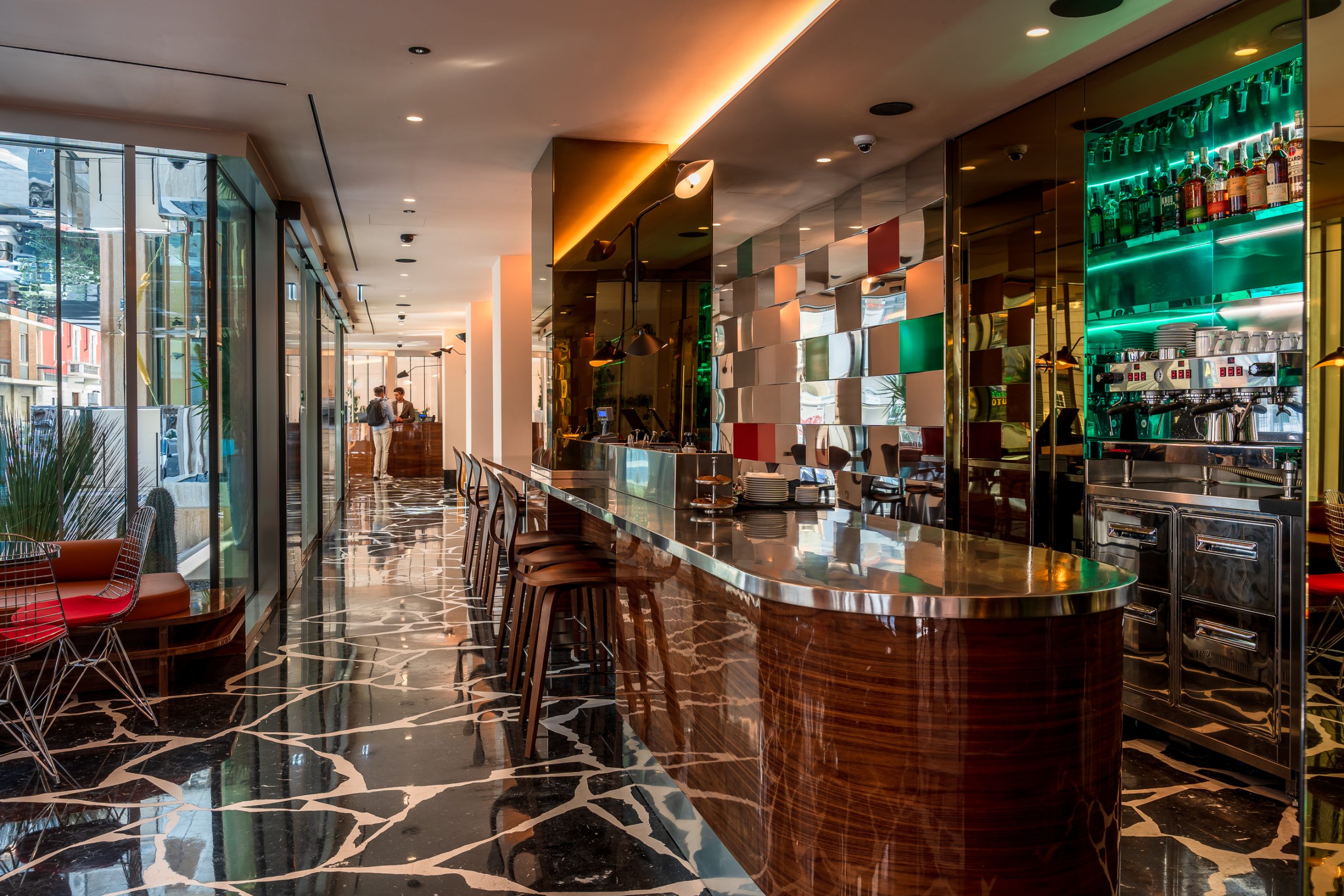 La facciata si inserisce armoniosamente nel contesto storico del quartiere di Porta Venezia e l’architettura dell’hotel è stata curata dal designer Alex Meitlis, noto per il suo stile distintivo che fonde elementi di design contemporaneo con influenze artistiche e culturali.