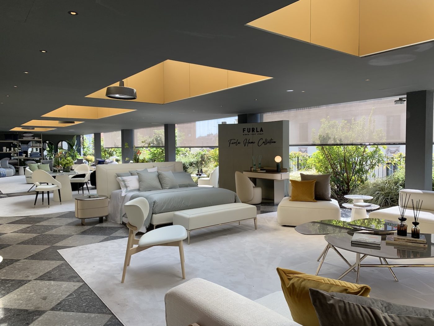 La terrazza al quarto piano dell’hotel ospita nei suoi oltre 300 mq una grande novità di Furla, che presenta la sua prima collezione Home, interpretando lo stile e l’estetica del brand attraverso il design per la casa con arredi, complementi e accessori dalle finiture uniche e distintive che accompagnano il vivere quotidiano.