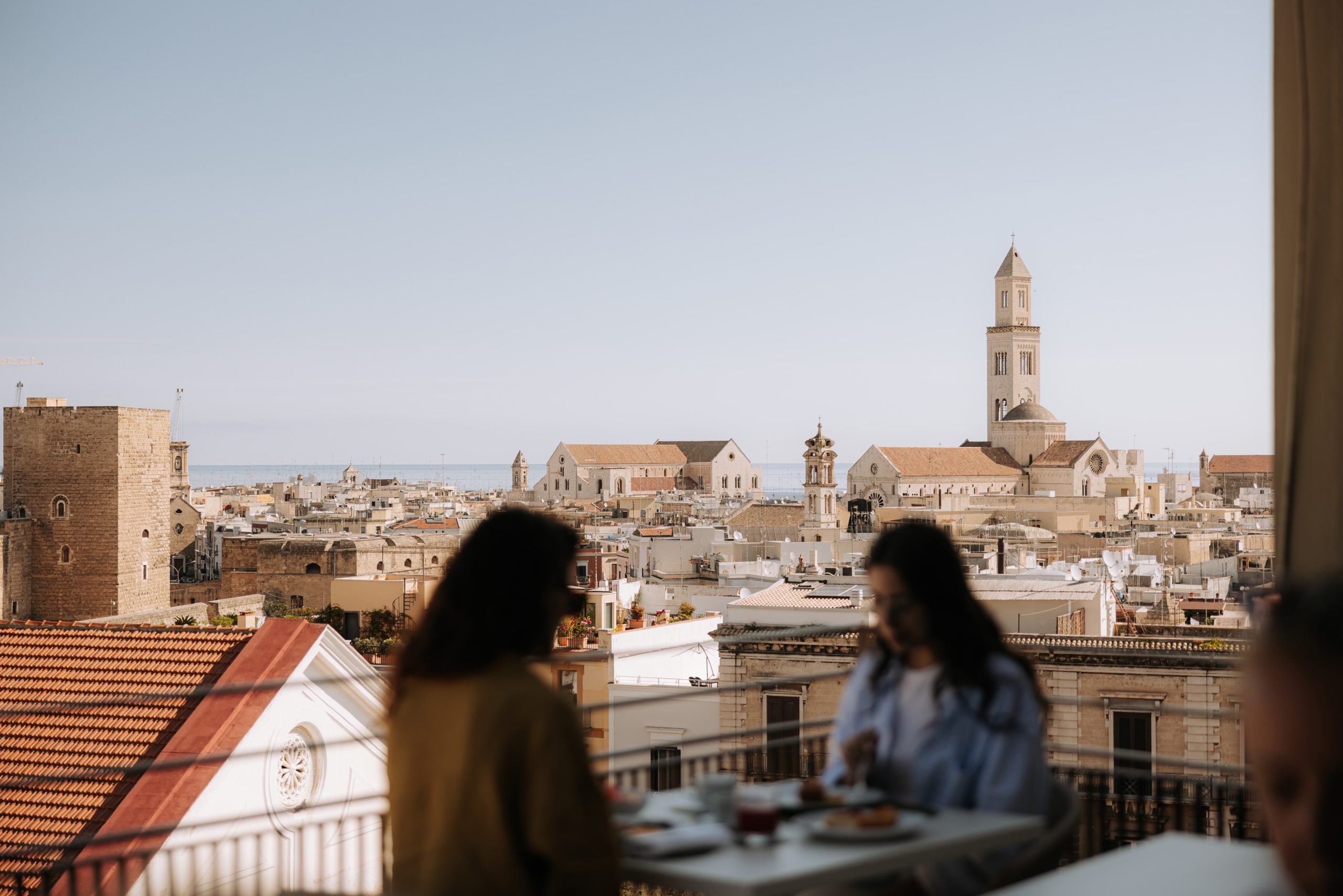 Il viaggio sensoriale continua nel Connubio Bistrot, dove la cucina pugliese viene valorizzata con piatti autentici e una selezione curata di vini e cocktail. Completano l’offerta i servizi di parcheggio e transfer per aeroporto e stazione.