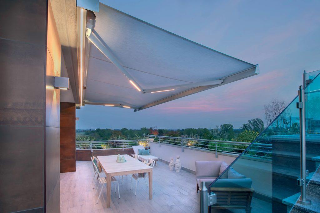 Perfetta per balconi e terrazze di medie dimensioni, la R75 Stone si distingue per il suo design compatto e lineare. La struttura in alluminio verniciato a polvere garantisce resistenza agli agenti atmosferici e un’estetica sempre impeccabile. Una soluzione discreta ma di grande impatto.