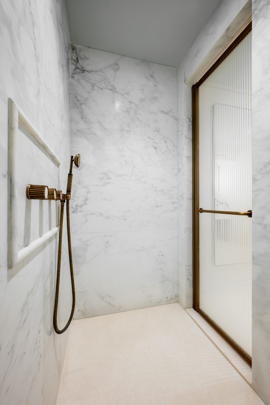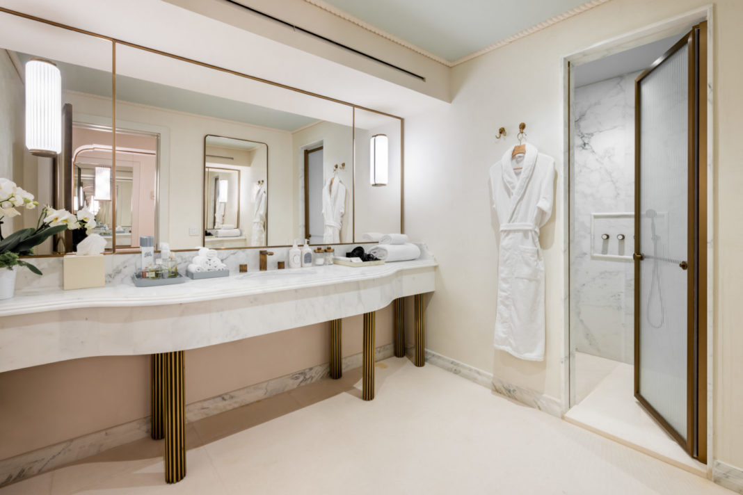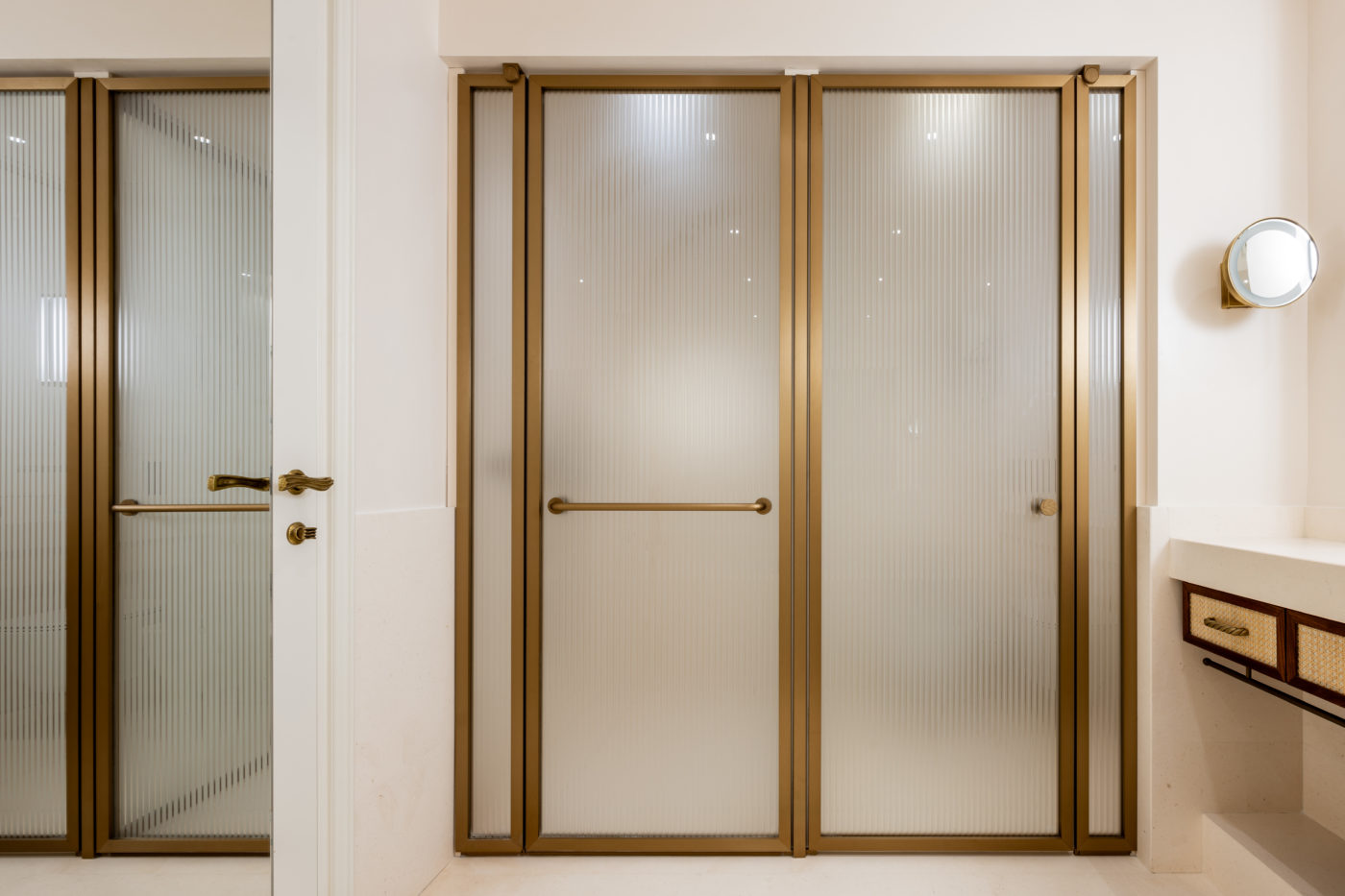 Per i bagni delle camere e de La Palma Spa dell’hotel è stata selezionata OmniDecor. Grazie alla sua capacità di filtrare la luce in modo discreto tramite la sovrapposizione alternata di righe satinate e trasparenti, DecorFlou Stripes è particolarmente adatto per creare sezioni visive tra ambienti, lasciando inalterato il passaggio della luce. La combinazione di righe su entrambi i lati della lastra conferisce al vetro un aspetto opaco indispensabile per garantire privacy negli ambienti bagno senza però ridurre la luminosità degli ambienti. Questo permette alla luce naturale di diffondersi assicurando la necessaria privacy e di trasformare il bagno in uno spazio di relax e benessere, perfettamente in linea con l’esclusività e l’eleganza del più antico albergo di Capri.