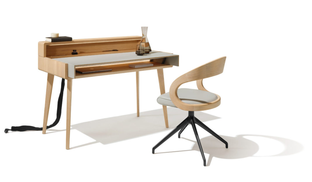 Per ospiti che viaggiano per business e cercano la raffinatezza, così come per i nomadi digitali che lavorano da remoto e conciliano lavoro e relax, sol è la scrivania di Team7 dal design pulito che si inserisce con stile e discrezione nei progetti d’arredo più diversi. Due scocche in legno che scorrono una nell’altra, di cui una rivestita in pelle, costituiscono la struttura di base. I bordi in legno di testa della scocca esterna mettono in evidenza l’anima in legno massello di questo tavolo, sottolineando l’elevata qualità della sua lavorazione. Tra le funzionalità smart ci sono collegamento USB, tecnologia di ricarica wireless, contenitori per cancelleria, incavi portapenne elegantemente scavati nel legno e persino uno scomparto segreto, per soddisfare ogni desiderio. L’alzata opzionale incorpora l’illuminazione Led regolabile.