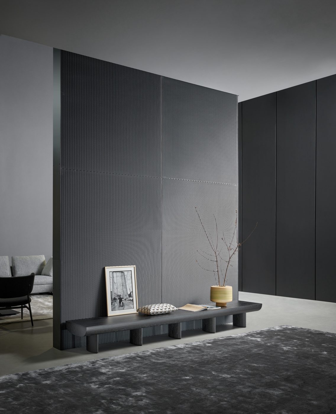 Sculptural disegnato da Alain Gilles per Bonaldo è un oggetto d’arredo di grande impatto seppur con una linea semplice e lineare. Si presenta come un unico elemento di legno sorretto da cinque gambe che formano la base. La superficie si sviluppa ad arco verso li basso ed è dotata di una cavità nella parte posteriore utile a nascondere eventuali cavi per sistemi tecnologici.