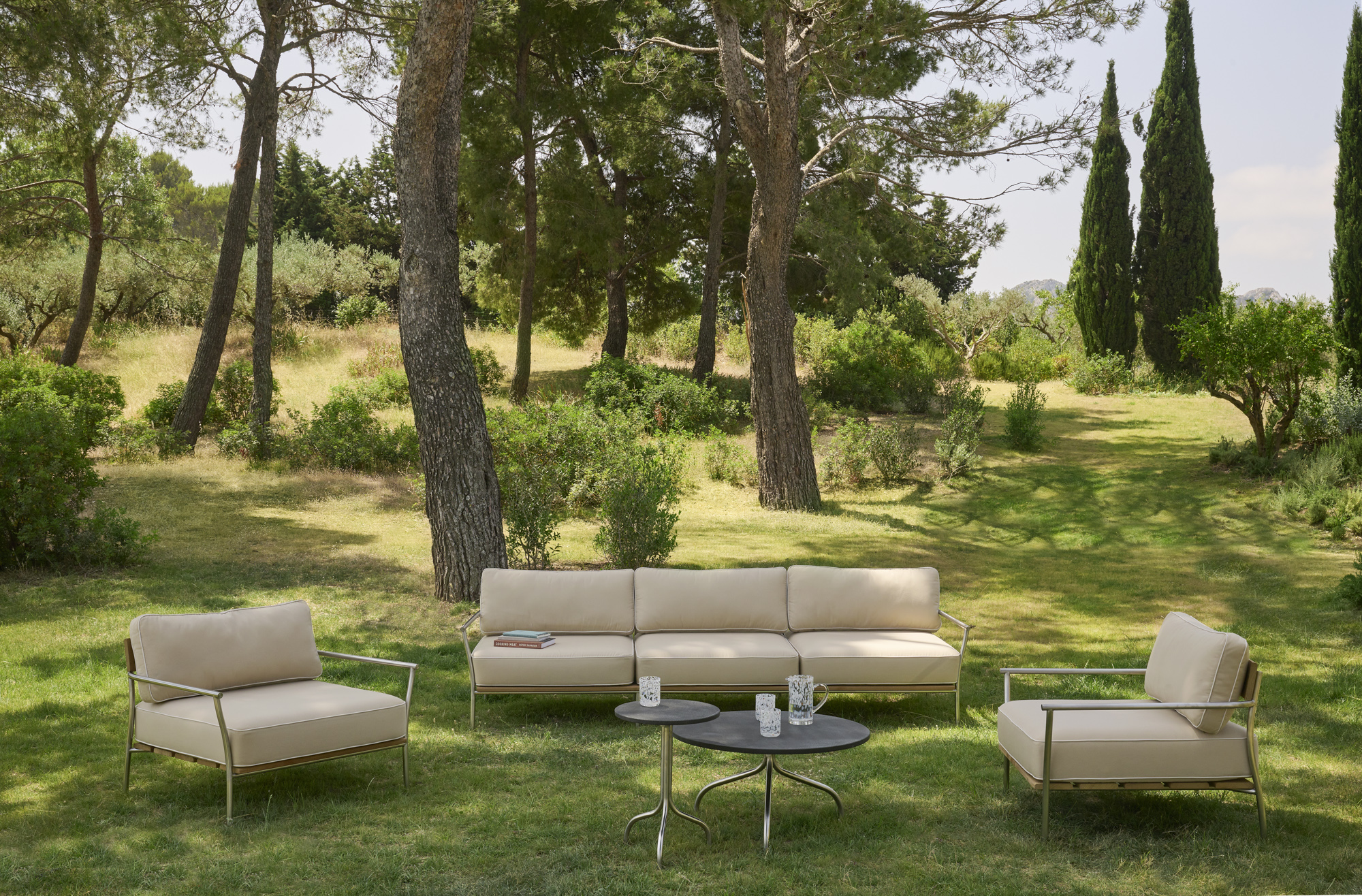 Per Tectona, Julie Richoz ha creato la collezione Cicala, che quest’anno si è arricchita di un salotto in cui le sedute e gli schienali in teak, lavorati secondo le tecniche tradizionali dell’ebanisteria, si combinano alla struttura in acciaio inox lucido, frutto di tecnologie all’avanguardia. Il nuovo elemento rafforza la varietà della linea di mobili da esterno che fonde l’eleganza al comfort, adattandosi con naturalezza a giardini, terrazze, balconi urbani e bordi piscina.