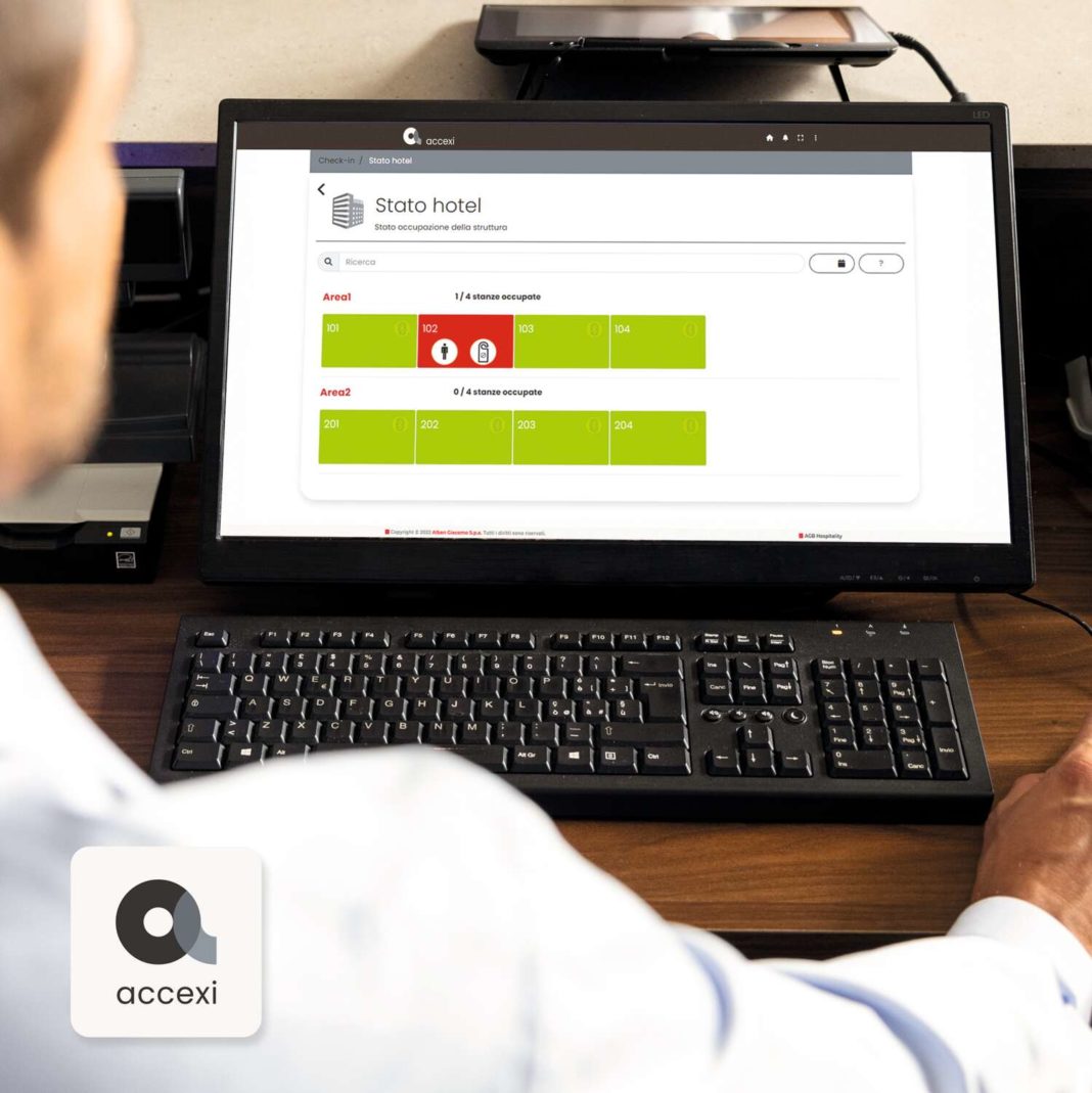 Quando si parla di accesso evoluto Domia, le serrature elettroniche sono solo una parte del sistema. Il personale dell’hotel ha bisogno di un controllo completo degli accessi: la web app Accexi, che in soli tre click garantisce un check-in facile e veloce, si integra con il lettore e la tasca energy saver per una panoramica in tempo reale sullo stato di occupazione delle stanze direttamente dalla reception. È possibile vedere se l’ospite è in camera e se ha attivato il pulsante “non disturbare” o ha richiesto il servizio di pulizia della stanza. Domia, di AGB, è stato pensato per la semplicità e la praticità d’uso, per questo Accexi è in cloud e può essere usata da qualsiasi dispositivo senza il bisogno di essere installata.