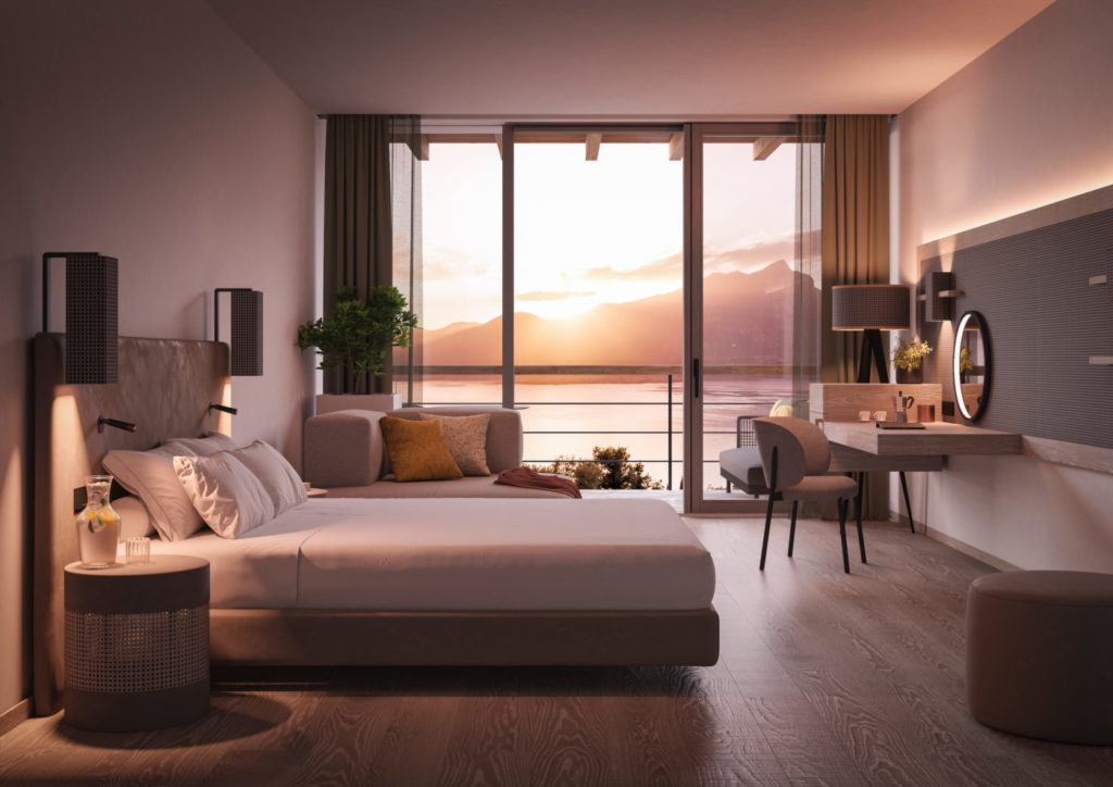 Il tema della sostenibilità avrà un ruolo centrale, dalla produzione di energia sostenibile al concetto culinario, incentrato su prodotti regionali e accuratamente selezionati. L’hotel si svilupperà su tre piani e le grandi vetrate, all’ingresso e nella zona bar, avranno il compito di trasportare la natura nello spazio interno.