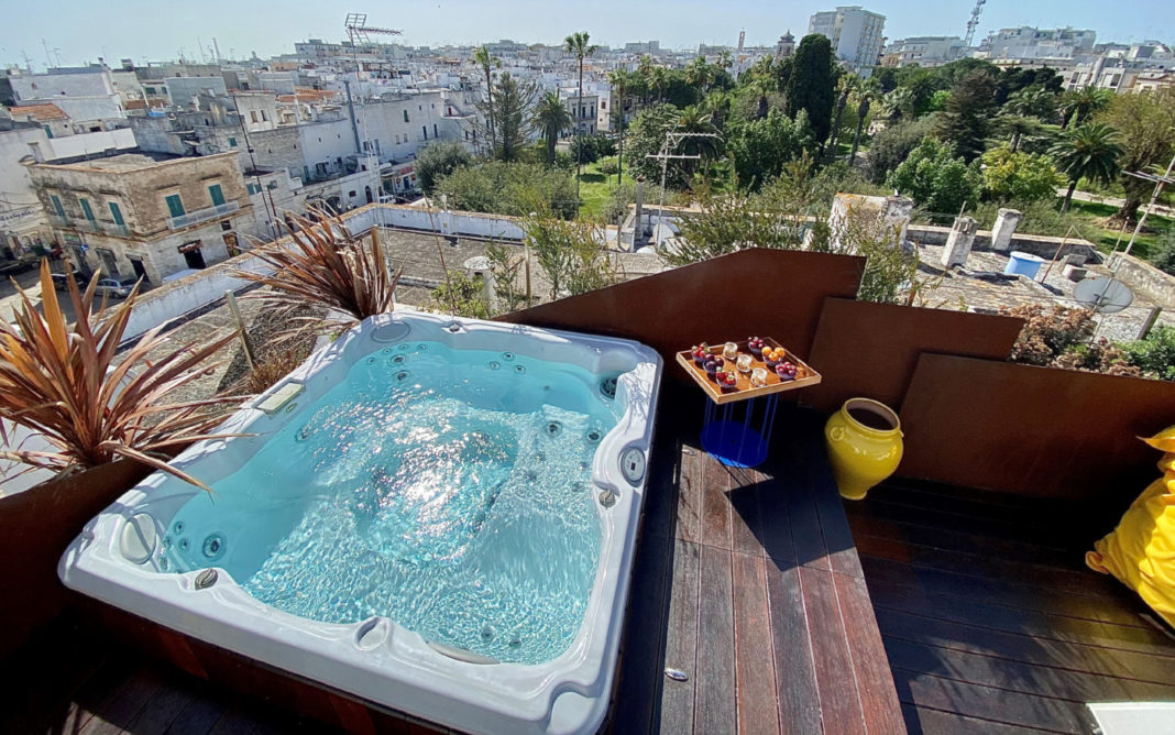 Biancofiore Apartments, che si trova a Ostuni, in Puglia, proprio nel centro del paese, offre quattro comode camere diverse per ampiezza e arredate con elementi di design e mobili di artigianato locale che riescono a fondere la singolare architettura del palazzo con la moderna concezione di ospitalità. E ad arricchire la sua offerta c’è anche la proposta di benessere garantita dalle soluzioni Jacuzzi® Tra queste, spicca una Spa J-235™ con guscio in finitura Platinum e installazione built-in, posizionata sullo splendido terrazzo tra cielo e mare, a completa disposizione della clientela. Progettata e costruita con materiali di qualità, secondo i più rigorosi standard Jacuzzi®, J-235™ offre una comoda seduta lounge e performance superiori. Equipaggiata con getti ClassicPro™, cascata e illuminazione a LED multicolore, questa Spa può ospitare comodamente fino a 6 adulti per indimenticabili sessioni di puro relax.