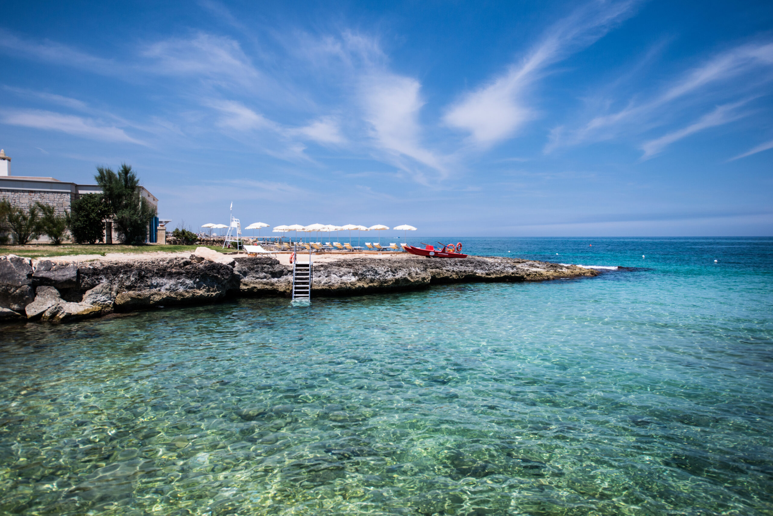Le sue 40 camere e suite, tra cui un’esclusiva villa privata, offrono ambienti spaziosi, letti king-size e terrazze private o vista mare. Gli ospiti possono usufruire di una spa con talassoterapia, una piscina di acqua salmastra, due spiagge private, ristoranti con cucina locale e di pesce, un campo da golf a 18 buche ed escursioni tra gli uliveti e ai suggestivi borghi pugliesi dalle case bianche.