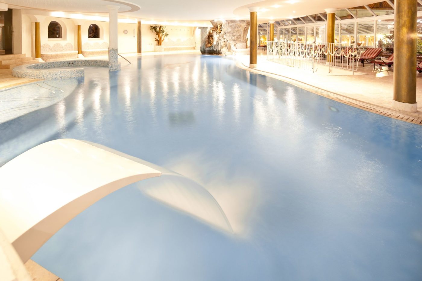 Fiore all’occhiello della struttura è proprio l’area wellness di oltre 8000 mq, dove gli adulti possono godersi gli angoli di pace in totale silenzio e rigenerare mente e corpo, mentre i bambini si divertono a giocare insieme alle animatrici. I più attivi possono dedicarsi agli sport estivi con passeggiate, escursioni guidate o visitare la miniera didattica di Monte Neve, a due passi dall’hotel.