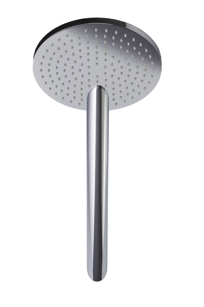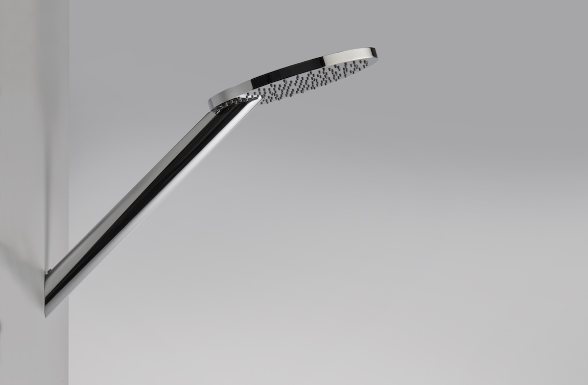 Con il sistema doccia PUNTOEVIRGOLA il classico soffione a parete cede il posto a un corpo tubolare in acciaio inossidabile lungo 39 cm inclinato di circa 45°, che emerge direttamente dalla parete e termina con un soffione di 25 cm di diametro. Le linee allungate, ispirate alla silhouette della doccetta, sono amplificate fino a triplicarne il volume, creando un oggetto funzionale e sorprendente. L’acqua erogata da ugelli anticalcare offre un effetto pioggia intenso ma delicato, avvolgente e rigenerante. Un segno visivo potente, essenziale e al tempo stesso di grande impatto, capace di dialogare con le architetture più contemporanee del bagno.